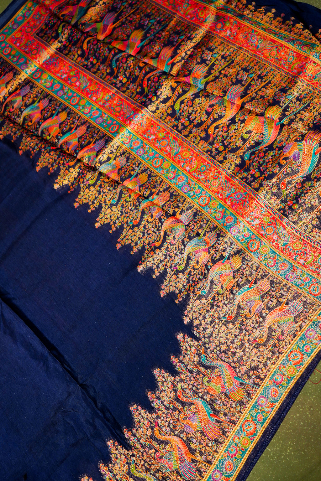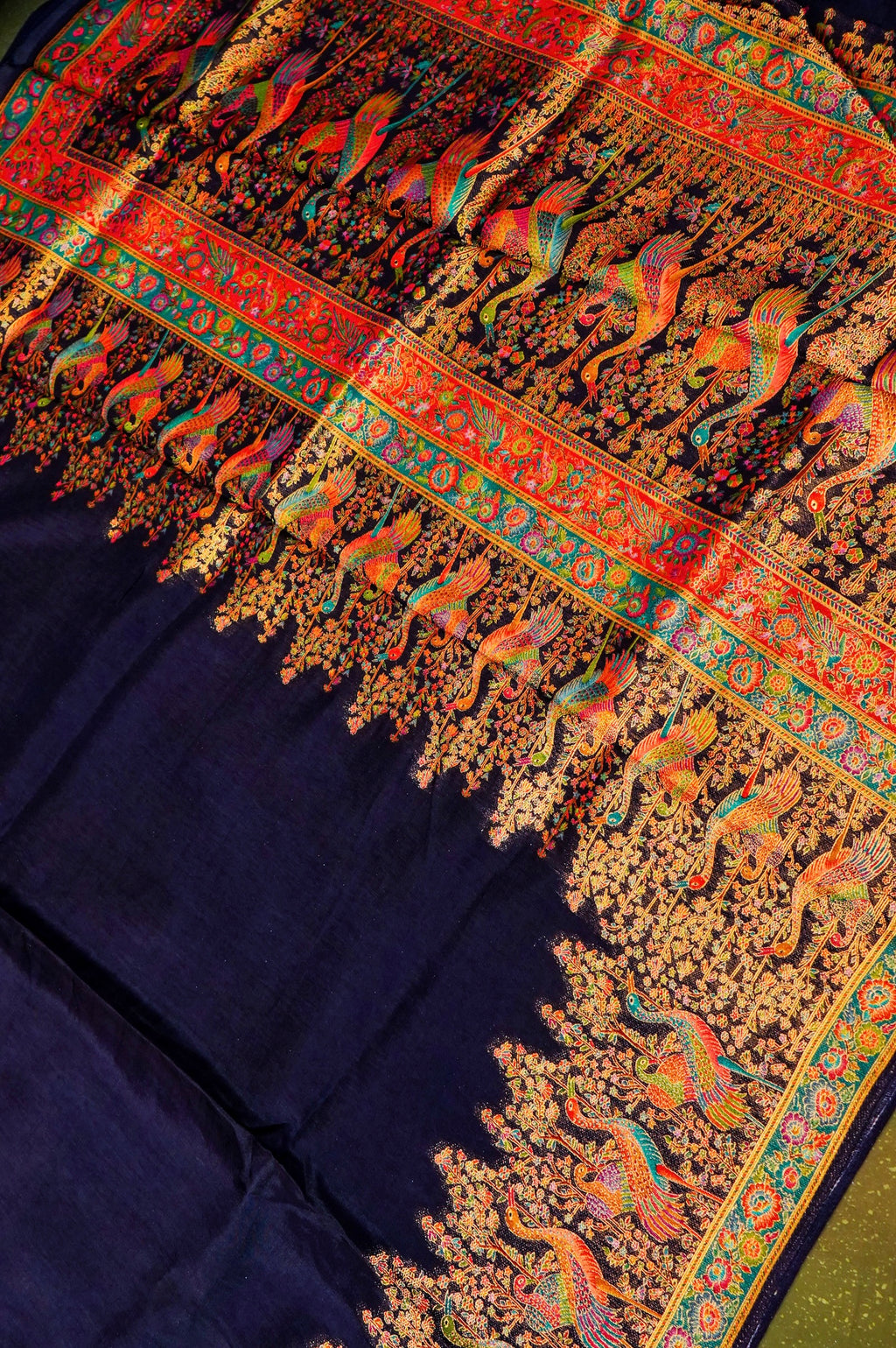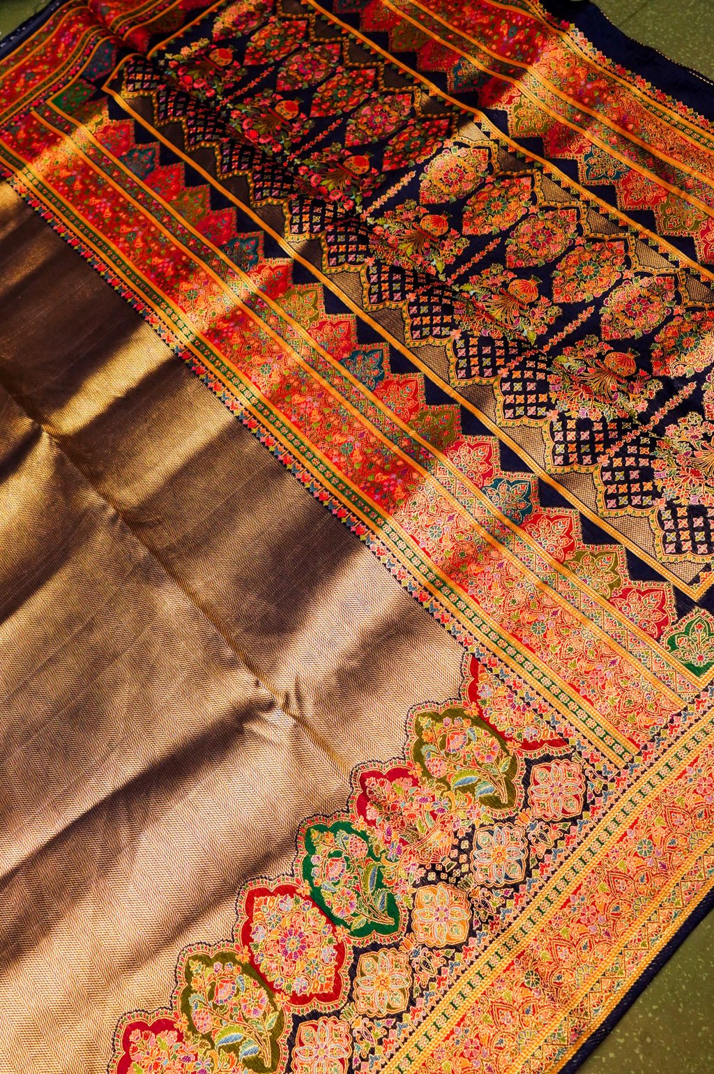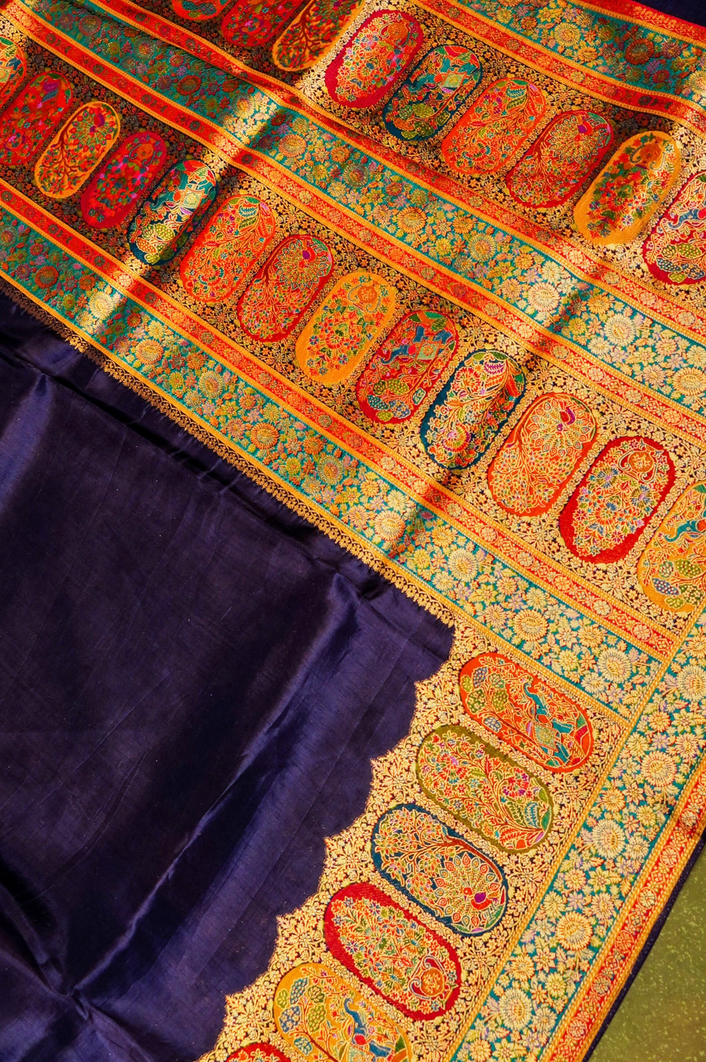 Banarasi Navy Blue Blended Moonga Silk Saree
