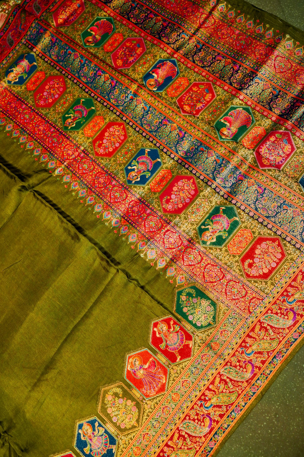 Banarasi Mehdi Green Blended Moonga Silk Saree