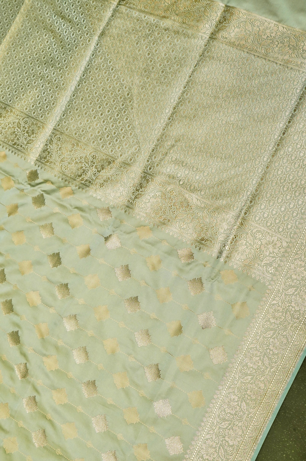 Banarasi Pastel Green Blended Mashru Silk Saree