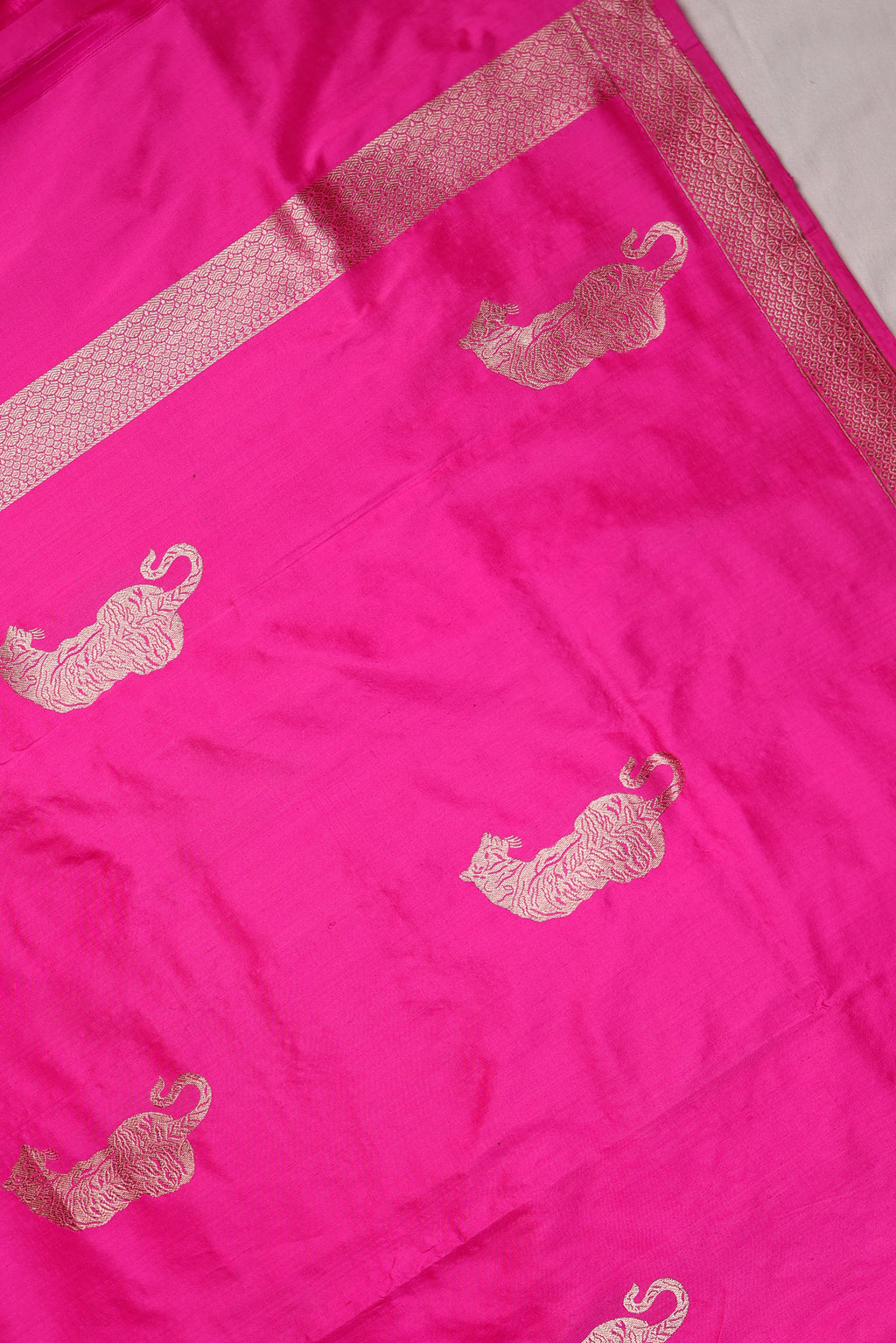 Vantara | Handwoven Rani Pink Banarasi Katan Silk Saree