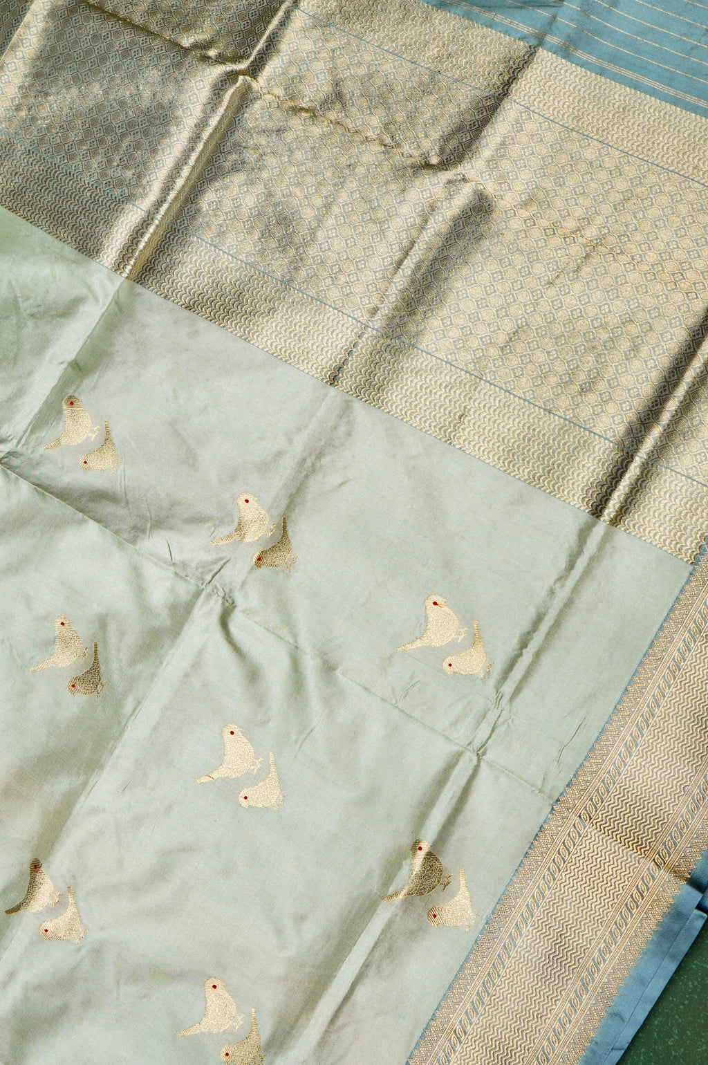 Vantara | Handwoven Light Grey Banarasi Katan Silk Saree