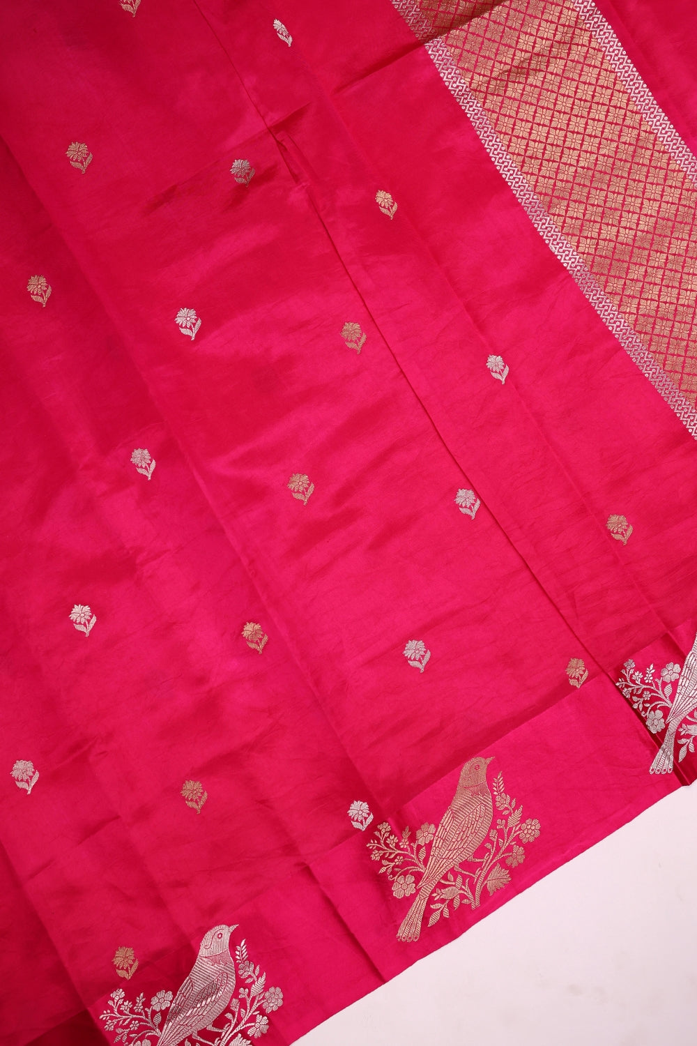 Handwoven Rani Pink Motif Banarasi Katan Soft Silk Saree