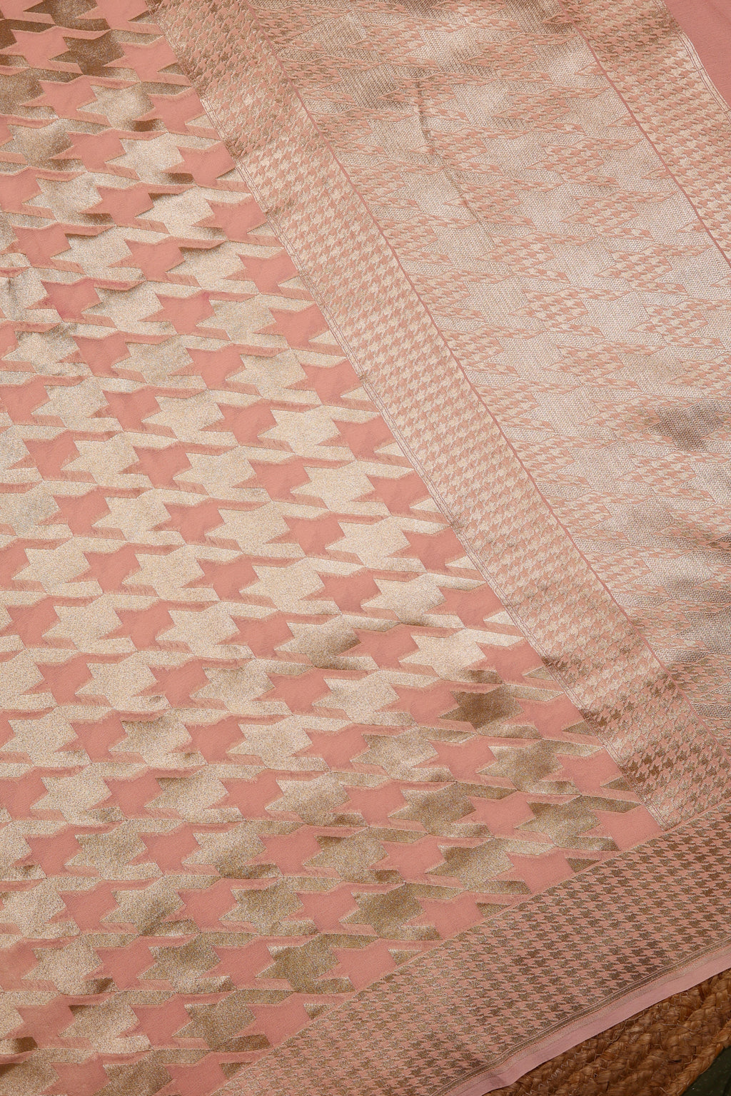 Handwoven Peach Banarasi Khaddi Georgette Silk Saree
