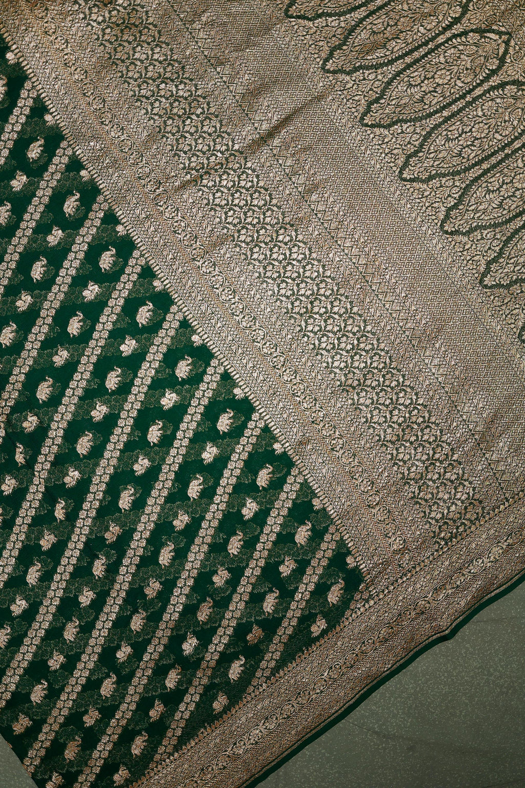 Handwoven Bottle Green Banarasi Khaddi Georgette Saree