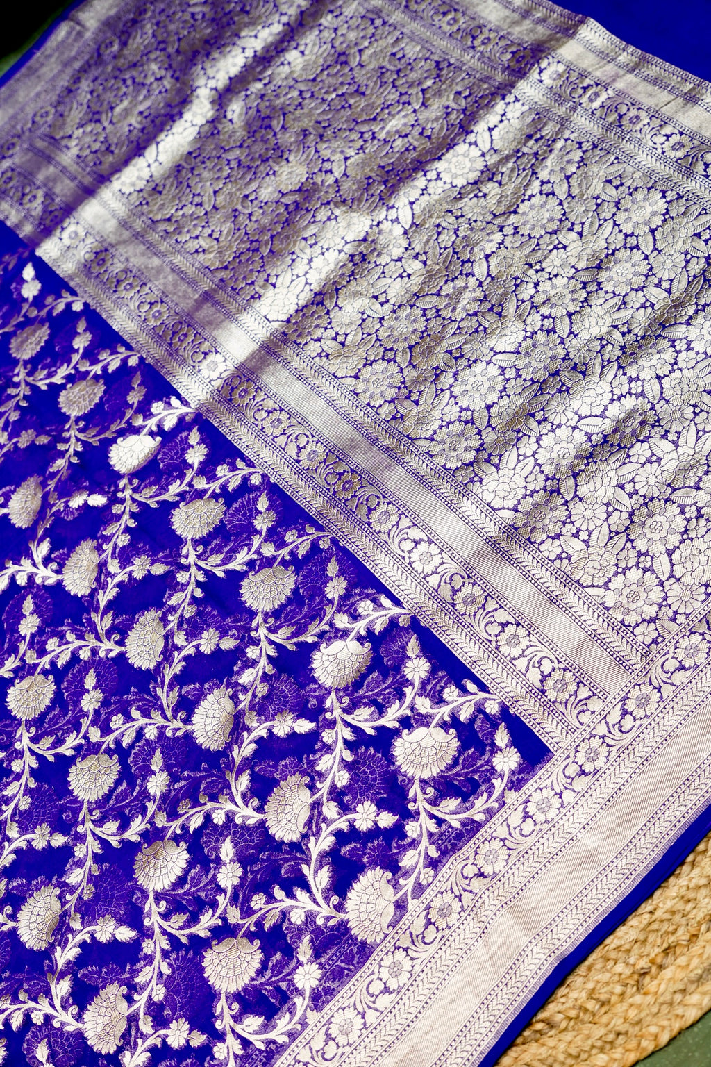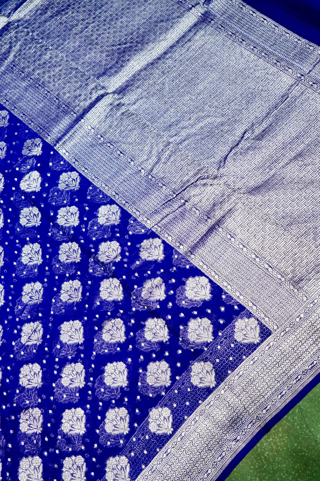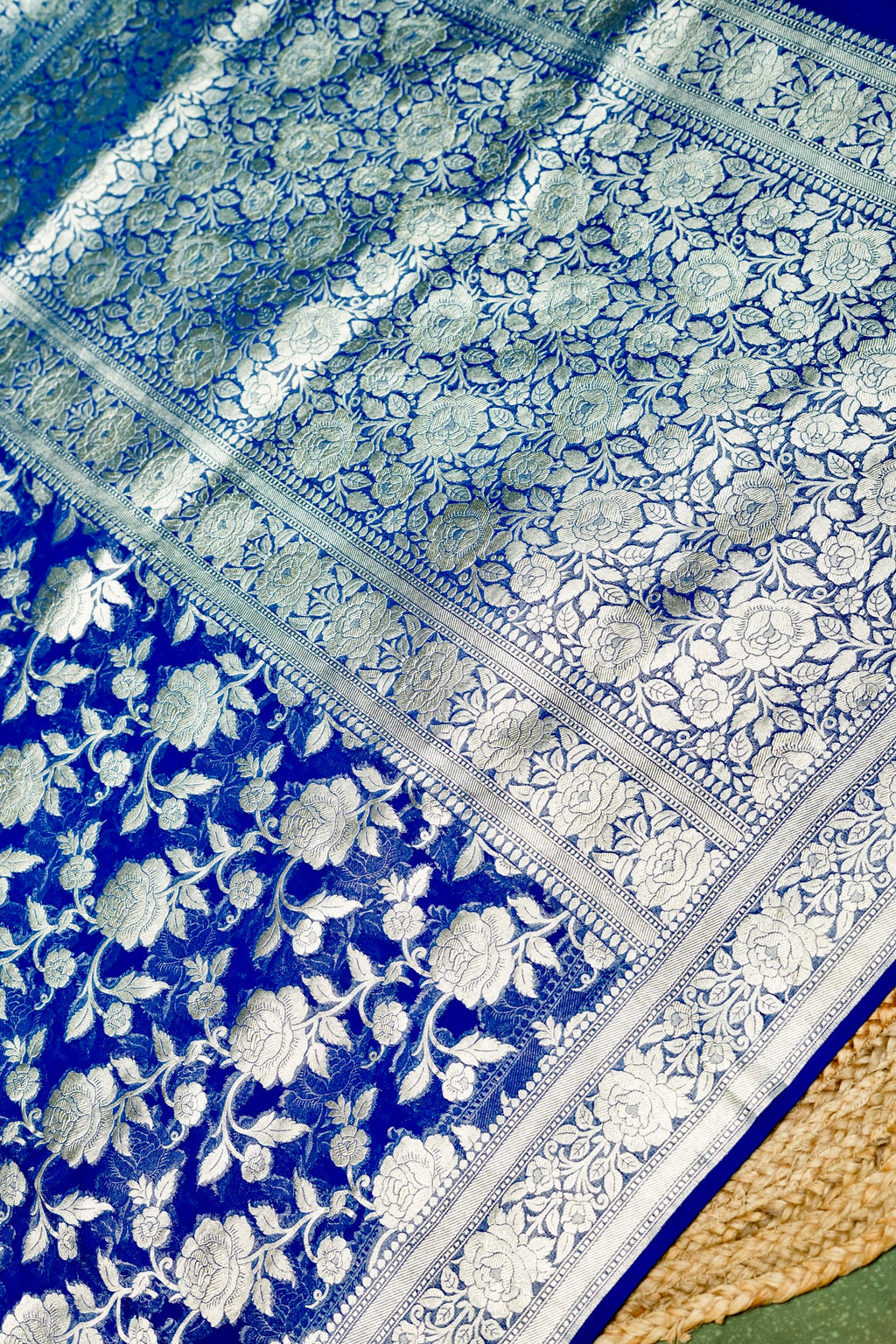 Handwoven Royal Blue Banarasi Khaddi Georgette Saree
