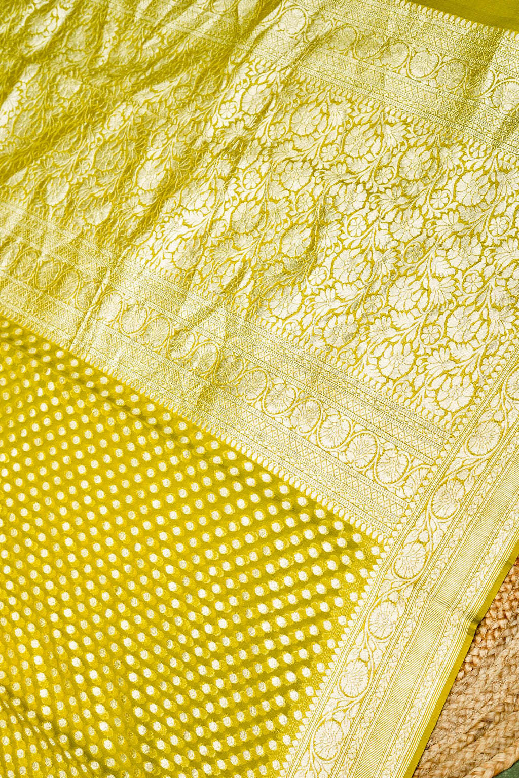 Handwoven Yellow Banarasi Khaddi Georgette Saree