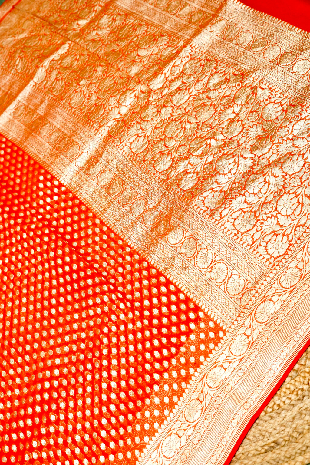 Handwoven Rust Orange Banarasi Khaddi Georgette Saree
