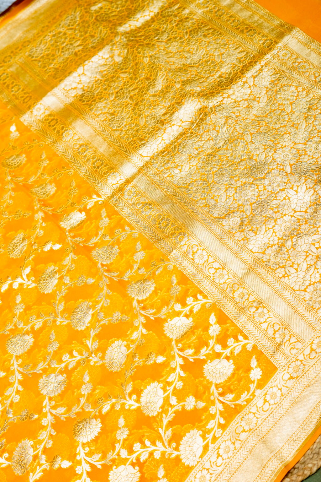 Handwoven Yellow Banarasi Crape Georgette Saree