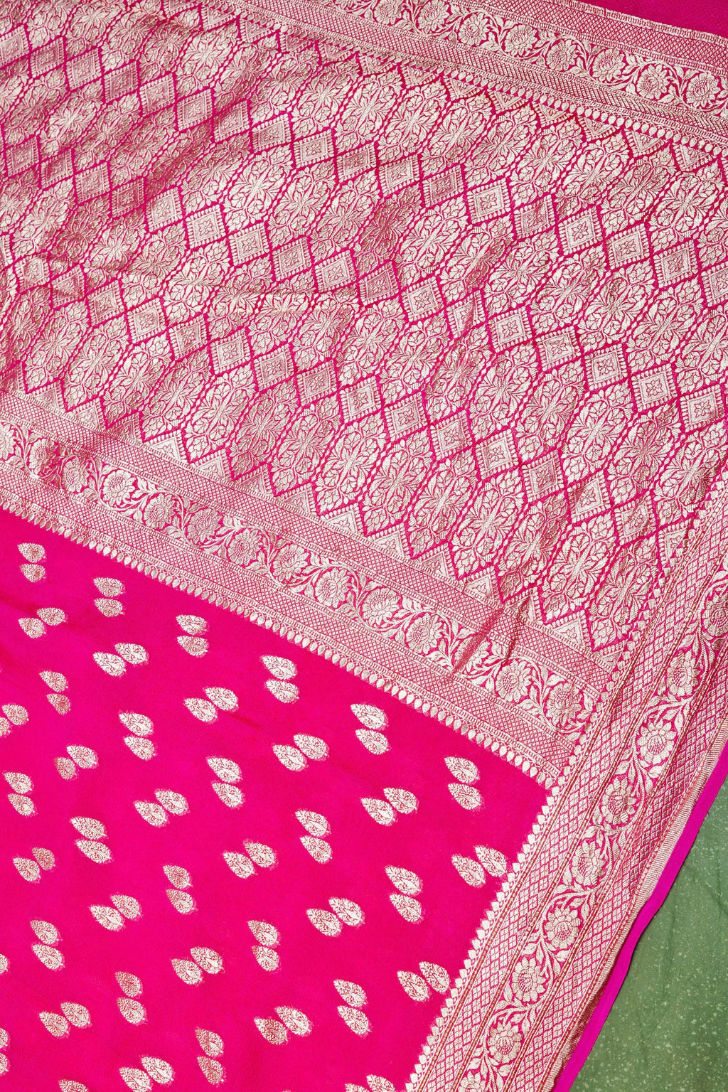 Handwoven Rani Pink Banarasi Khaddi Georgette Saree
