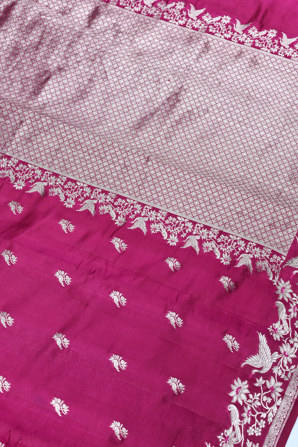 Handwoven Rani Pink Motif Banarasi Katan Soft Silk Saree