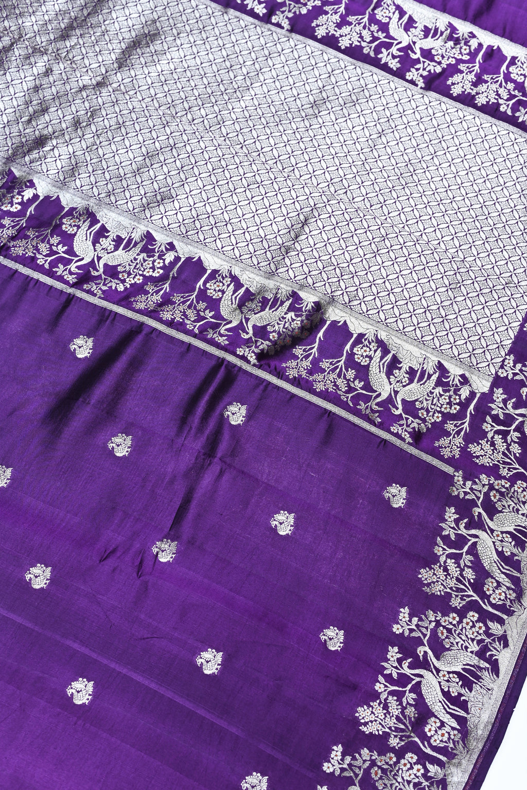Handwoven Purple Motif Banarasi Katan Silk Saree