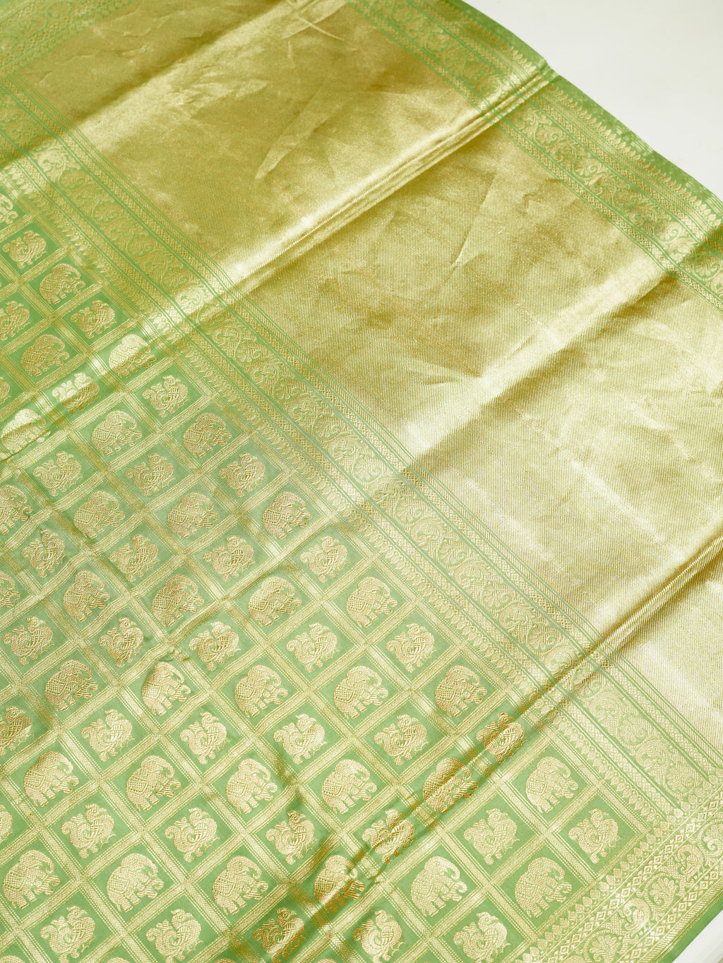 Handwoven Pista Green Motifs Banarasi Tissue Katan Silk Saree