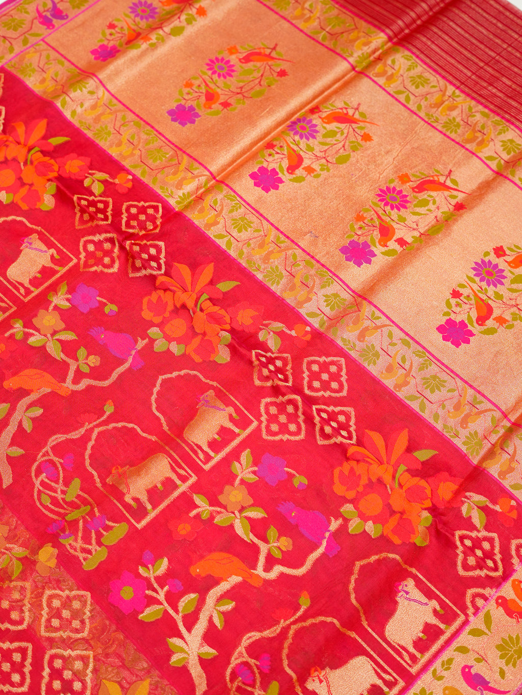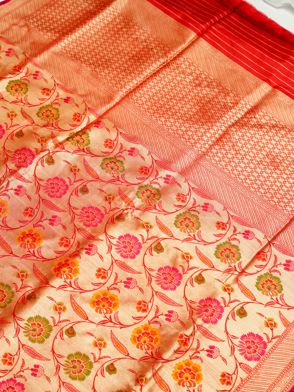 Handwoven Red Meenakari Banarasi Katan Silk Saree
