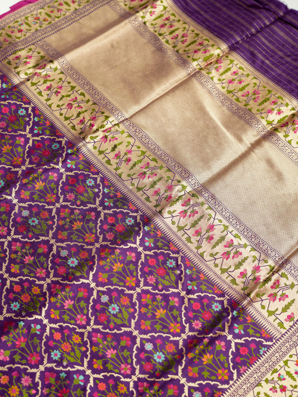 Handwoven Purple Meenakari Banarasi Katan Silk Saree