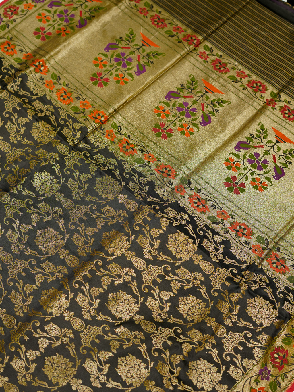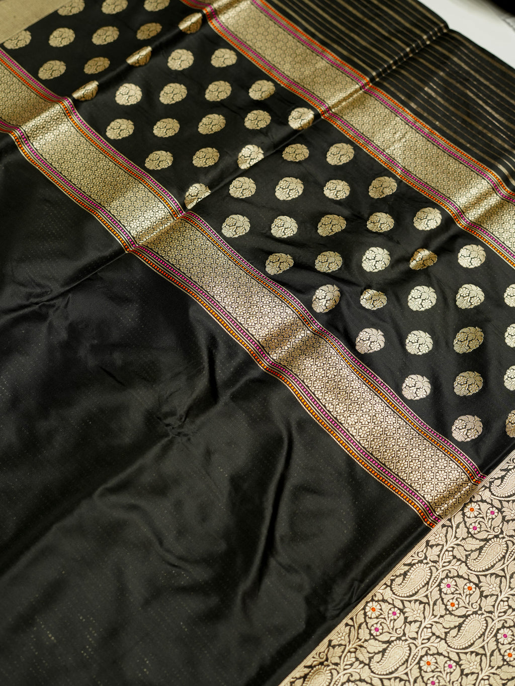 Handwoven Black Meenakari Banarasi Katan Silk Saree