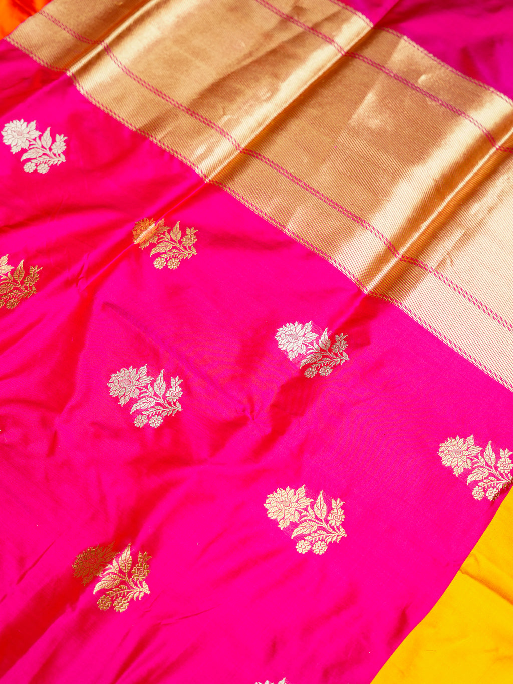Handwoven Hot Pink Meenakari Motif Banarasi Katan Silk Saree