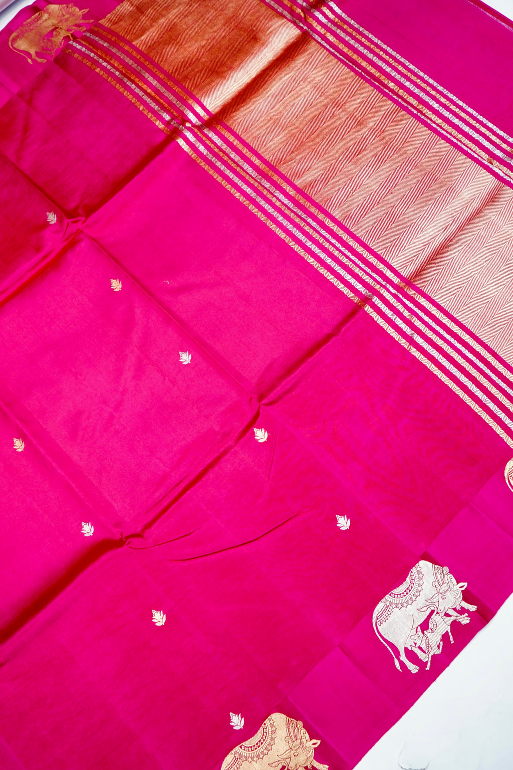 Handwoven Rani Pink Banarasi Katan Silk Saree