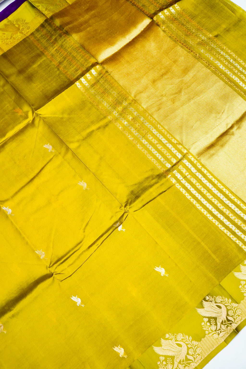 Handwoven Golden Yellow Banarasi Katan Soft Silk Saree