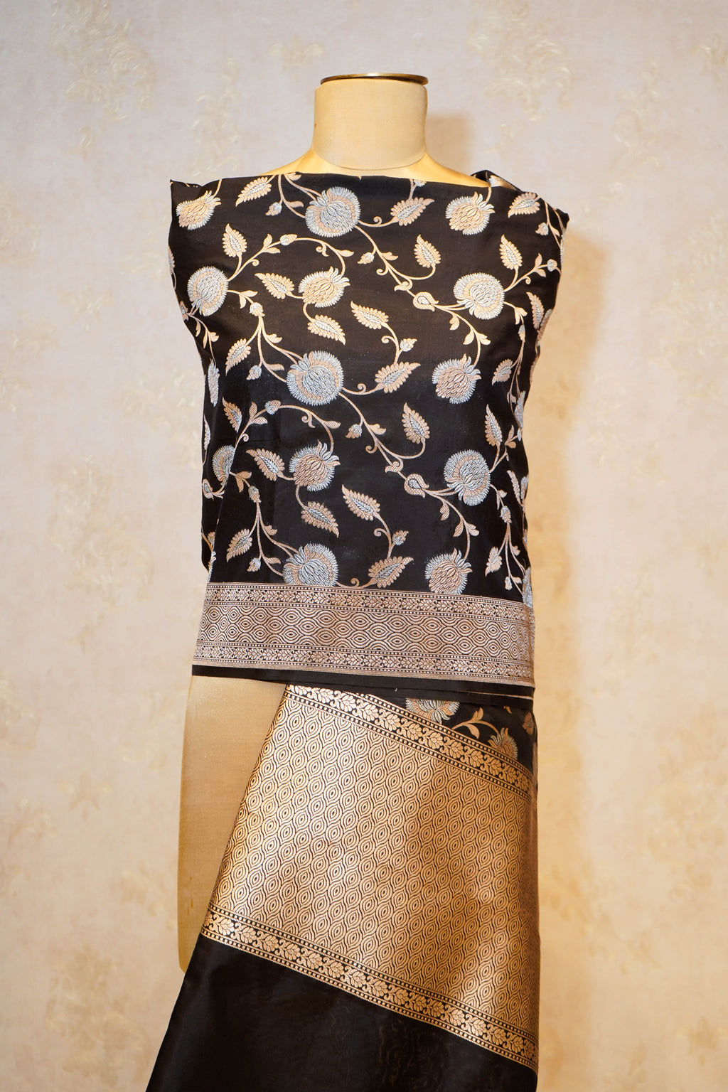 Handwoven Black Banarasi Crepe Silk Suit