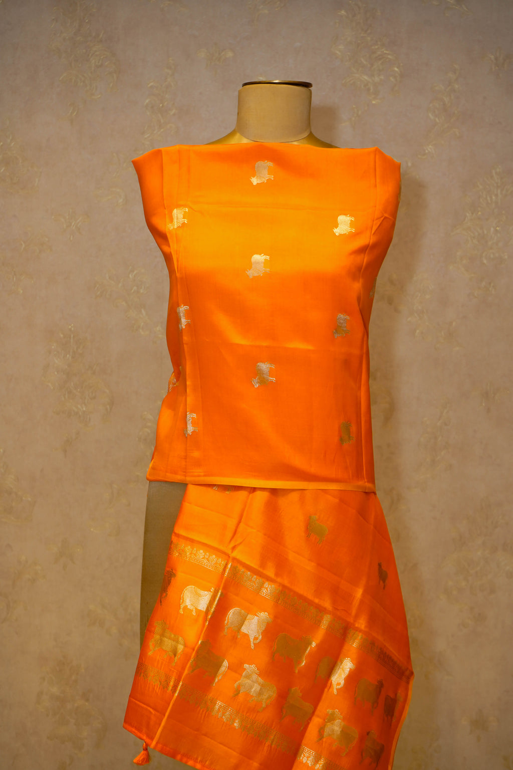 Handwoven Orange Banarasi Katan Silk Dupatta
