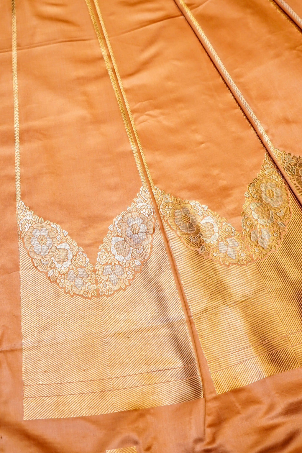 Handwoven Peach Banarasi Mashru Silk Lehenga Kali