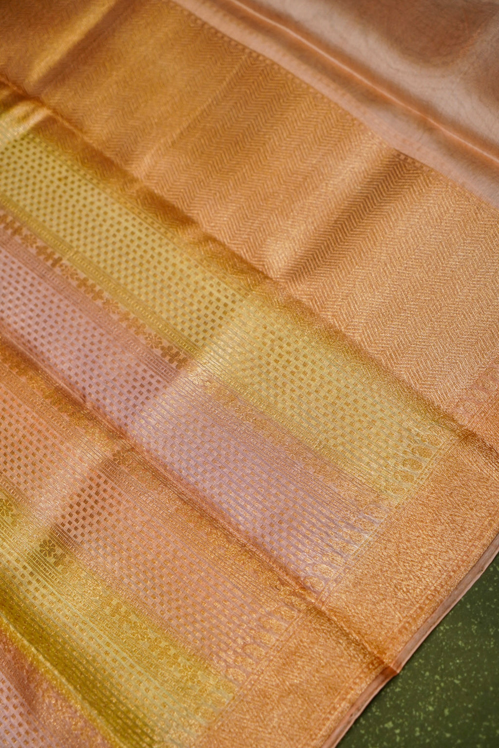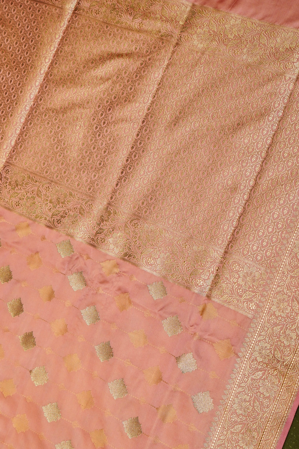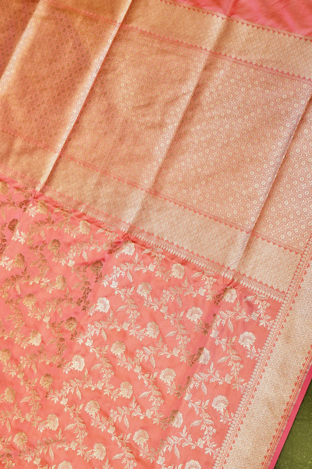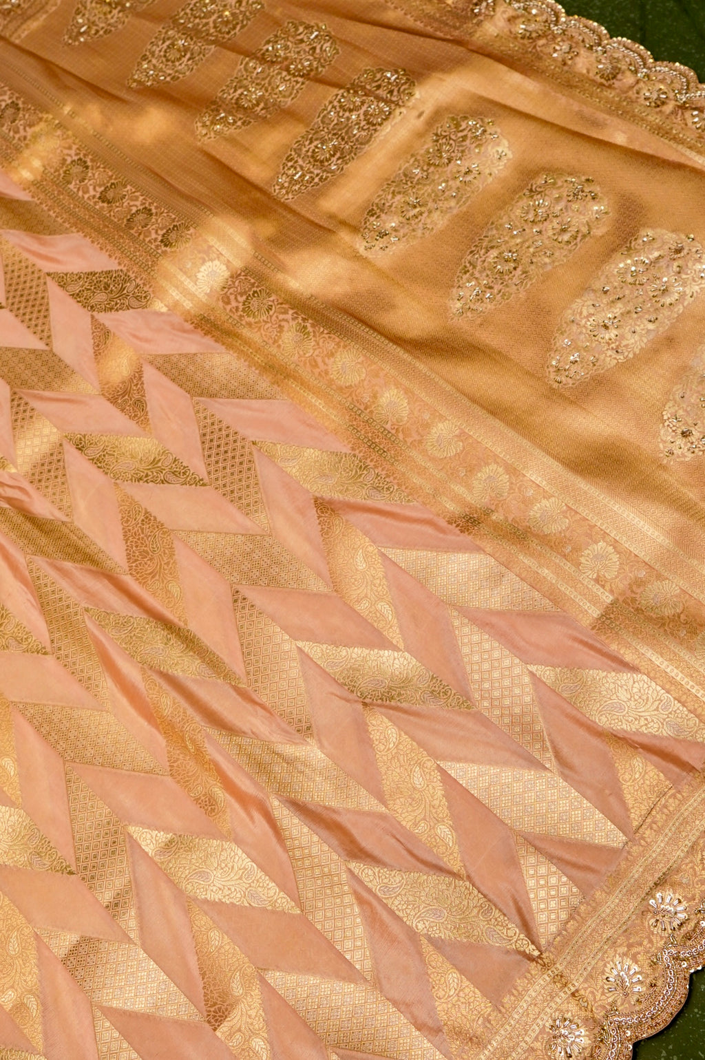 Handwoven Peach Banarasi Khaddi Georgette Silk Saree