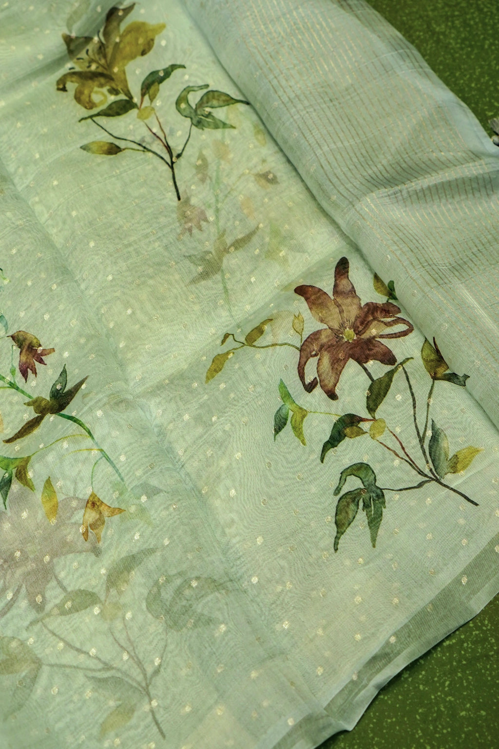 Banarasi Pastel Green Blended Mashru Silk Saree