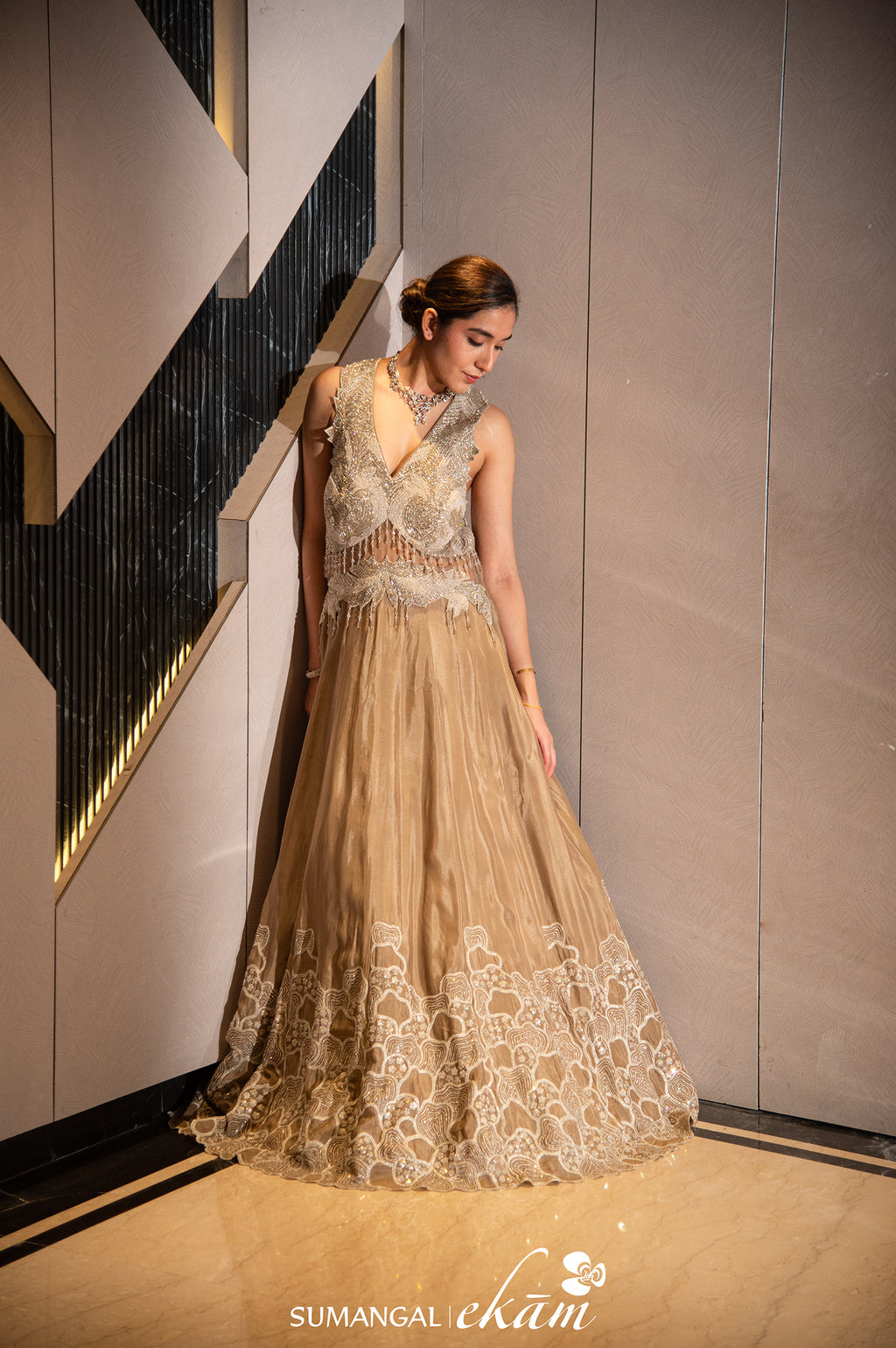 Designer Golden Tissue Silk Crop Top