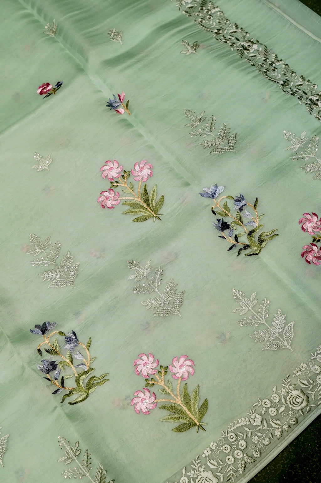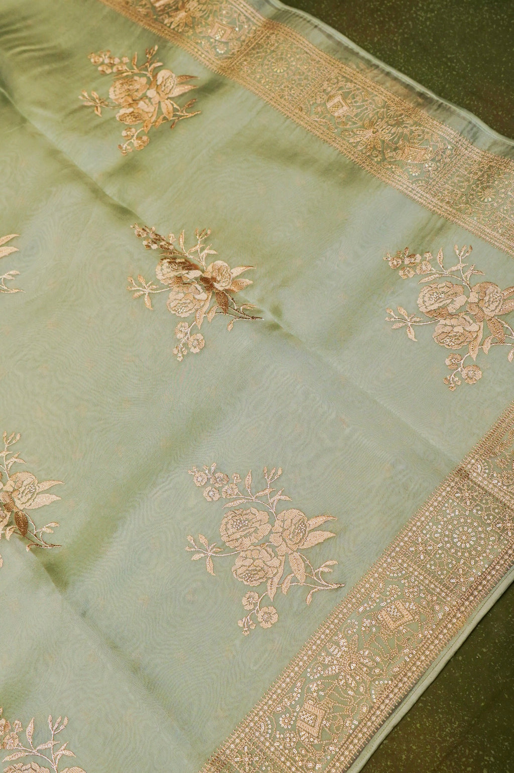 Designer Sage Green Organza Saree