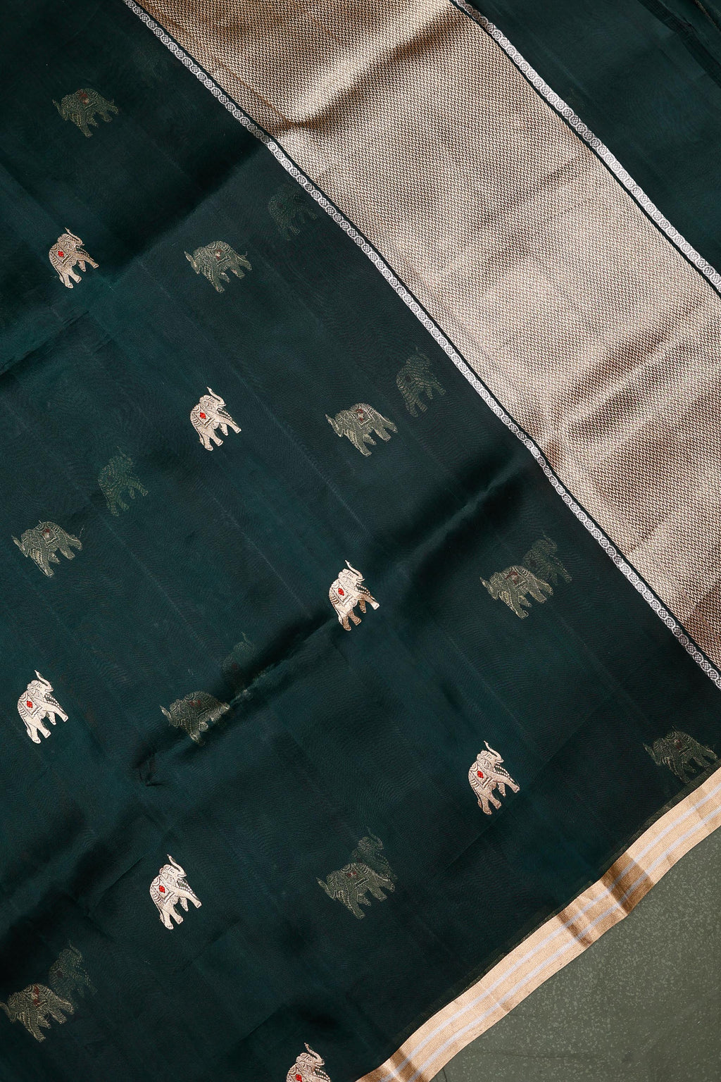 Handwoven Bottle Green Banarasi Gajji Silk Saree