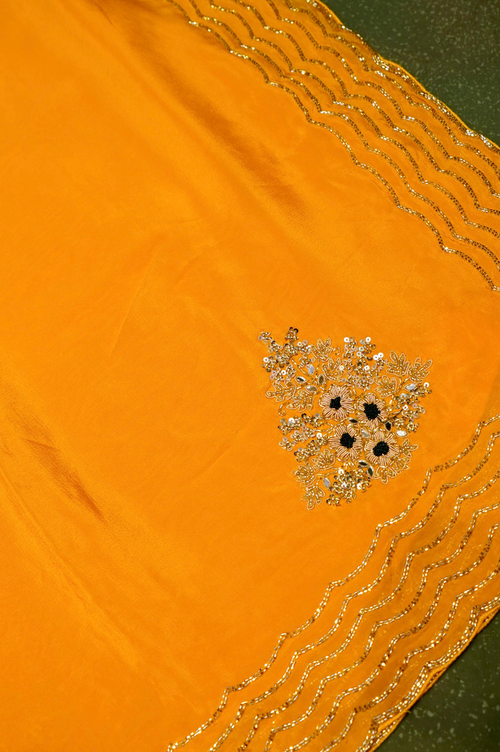 Designer Yellow Crepe Silk Saree