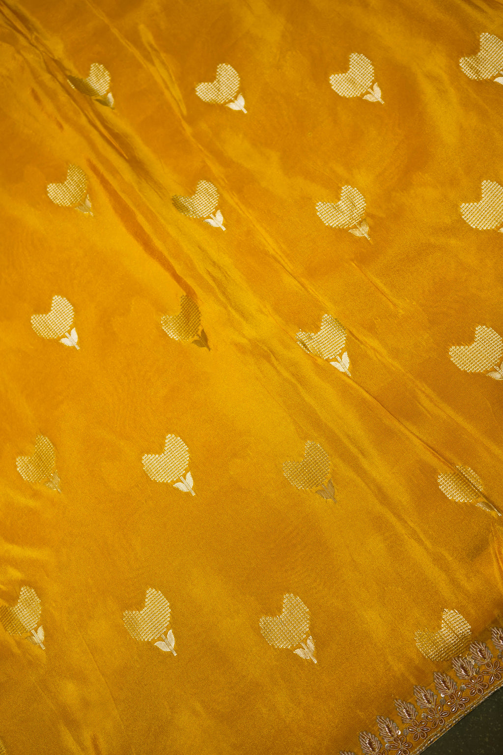Handwoven Yellow Banarasi Crape Georgette Saree