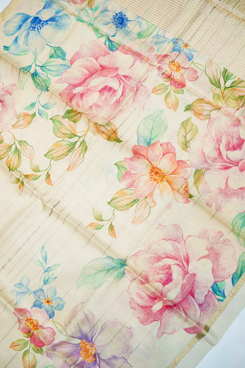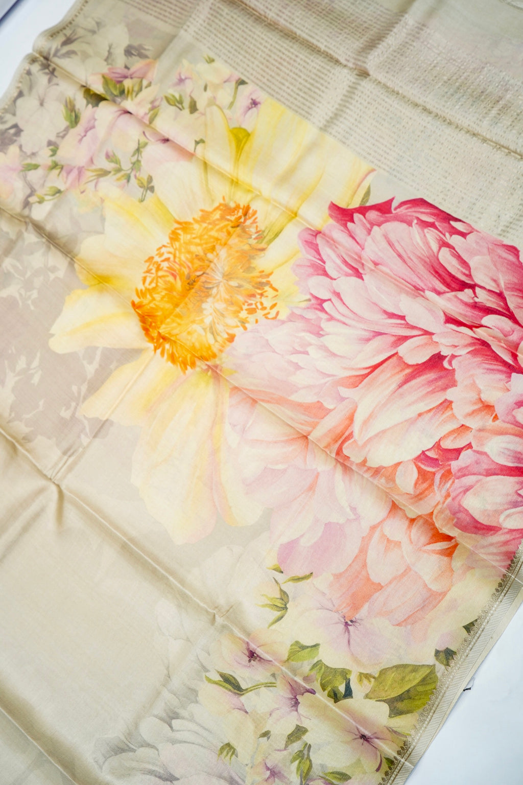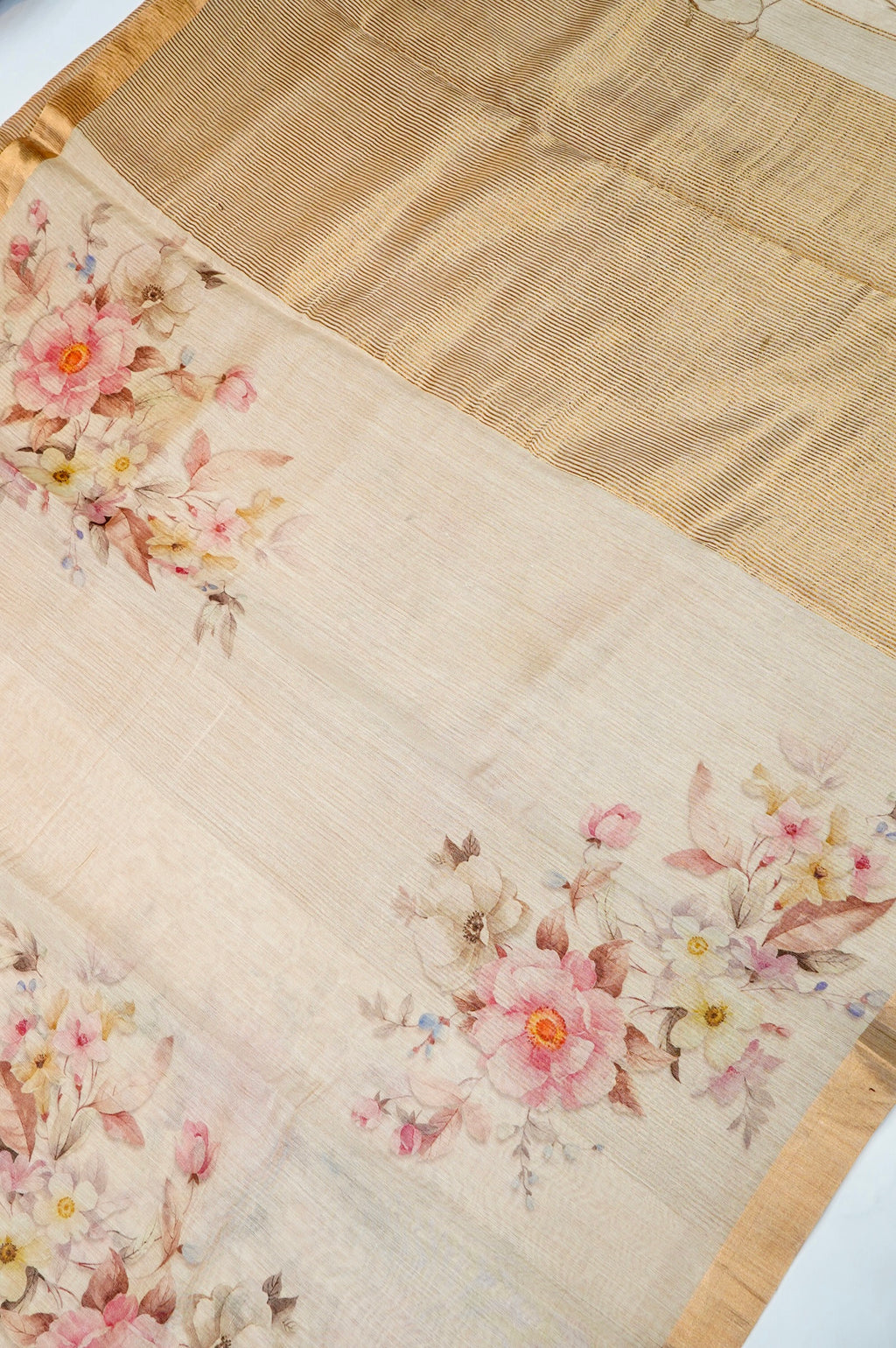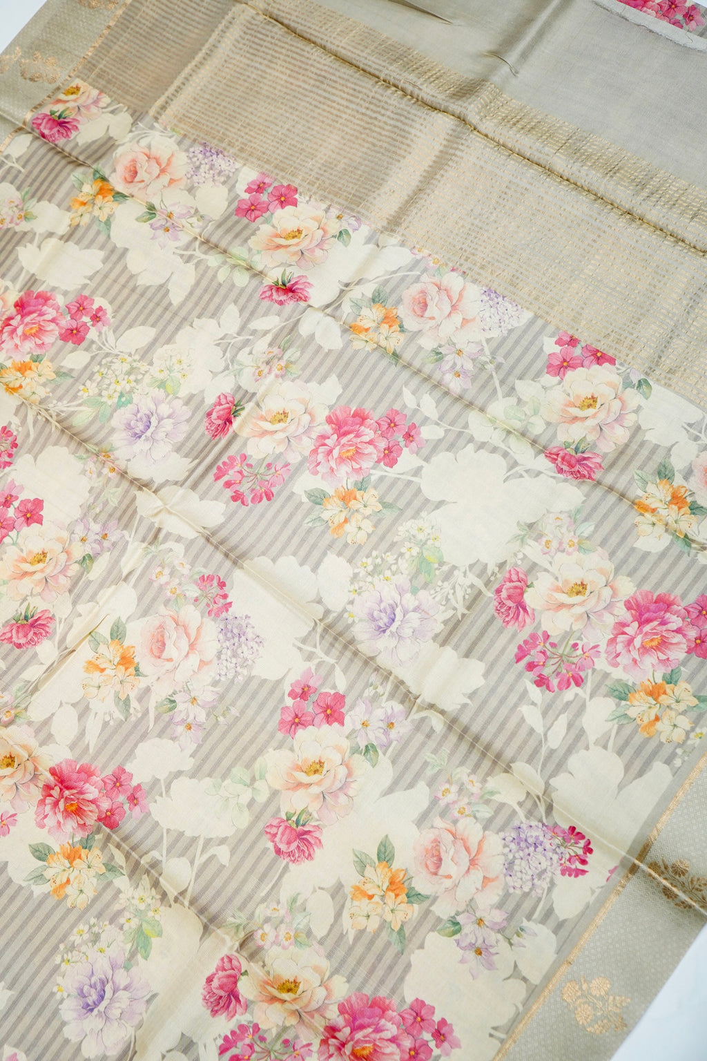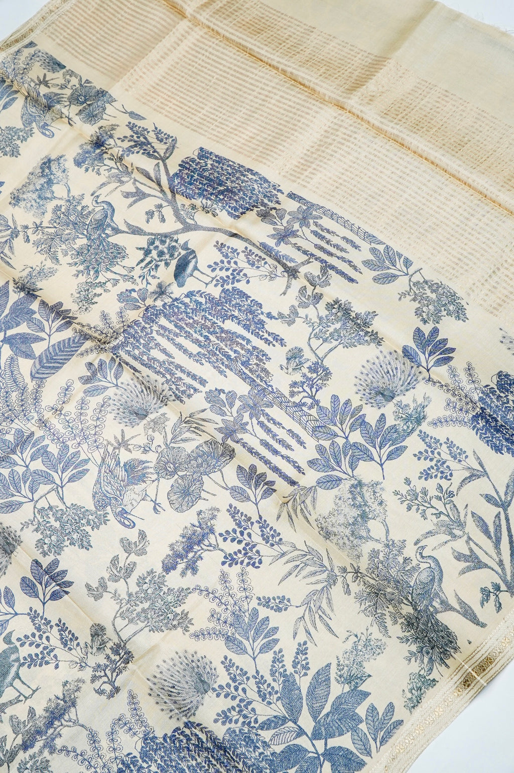 Handwoven Cream Banarasi Tussar Silk Saree
