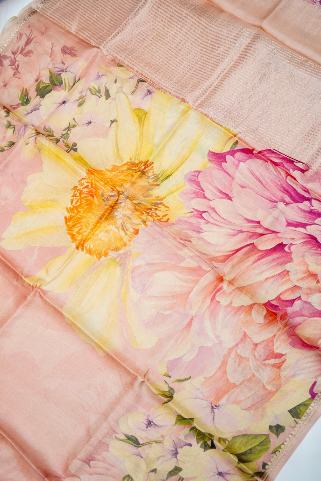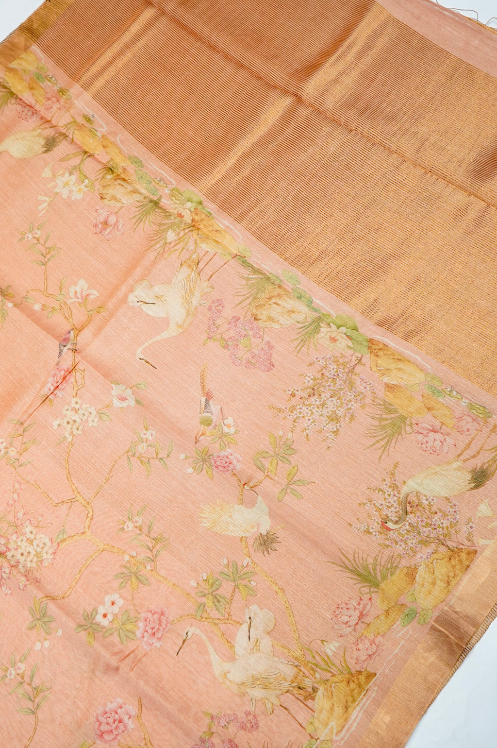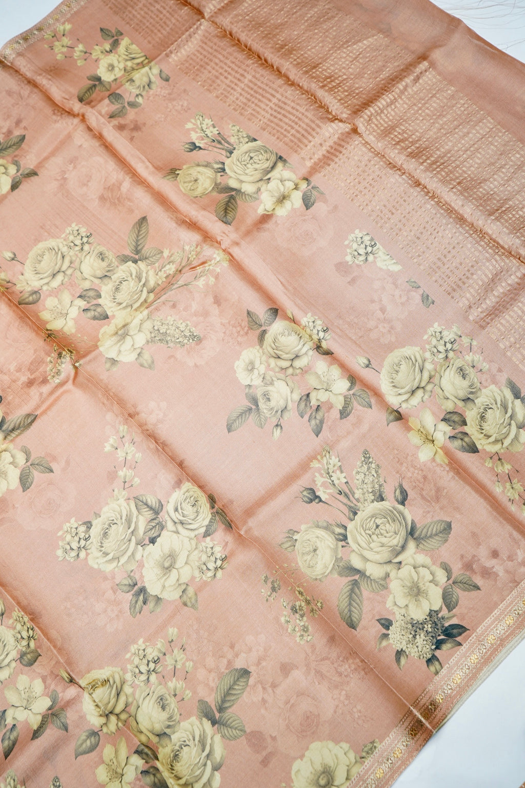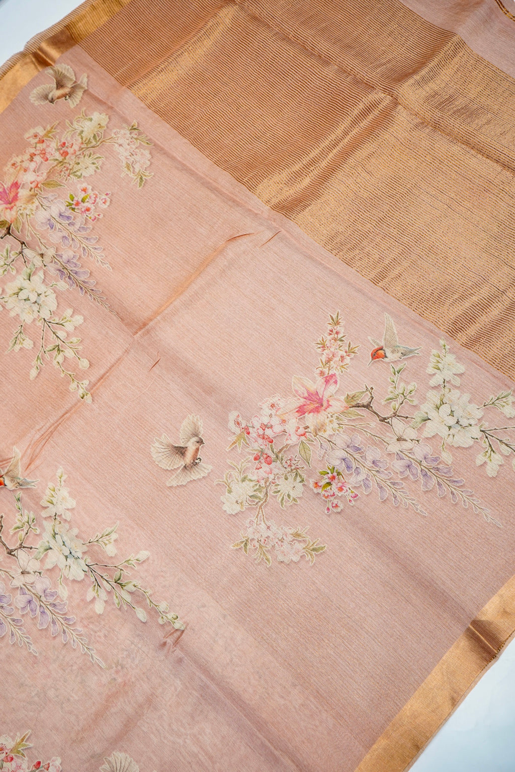 Handwoven Blush Peach Banarasi Tussar Silk Saree