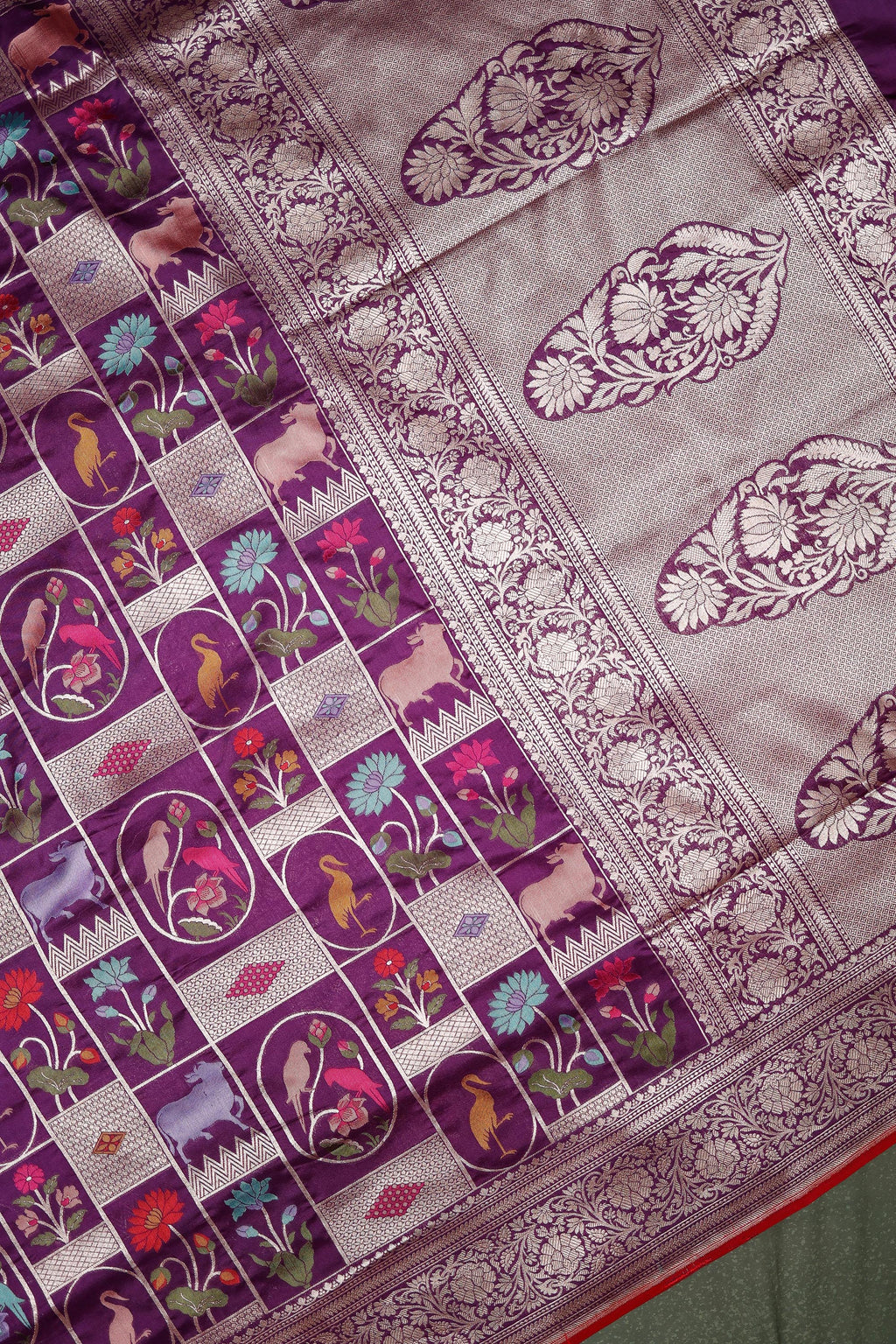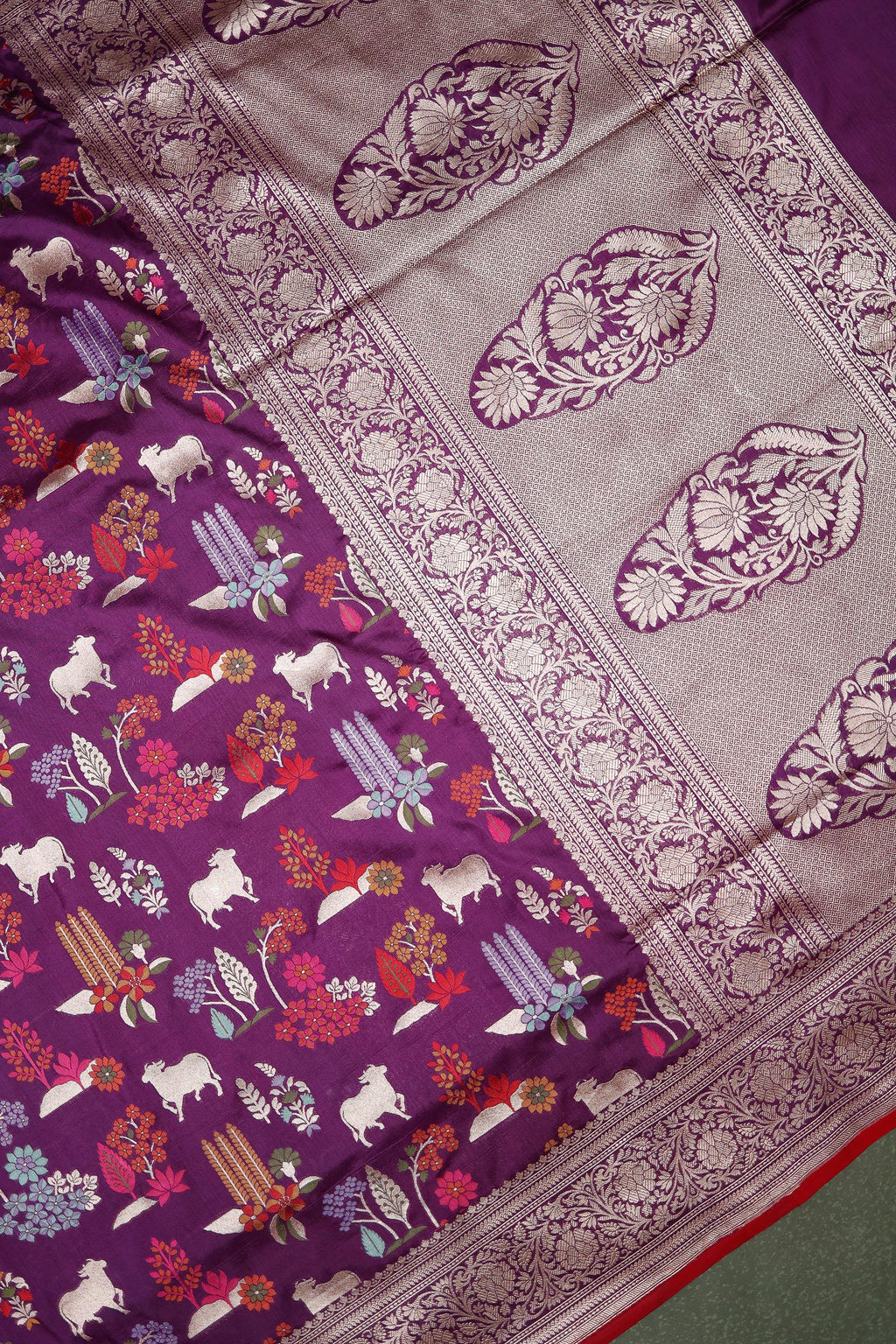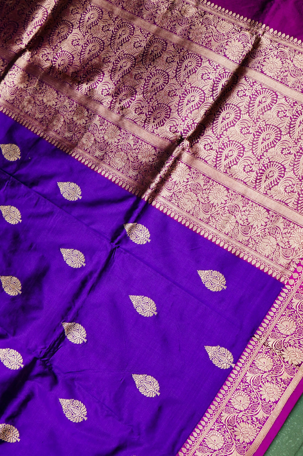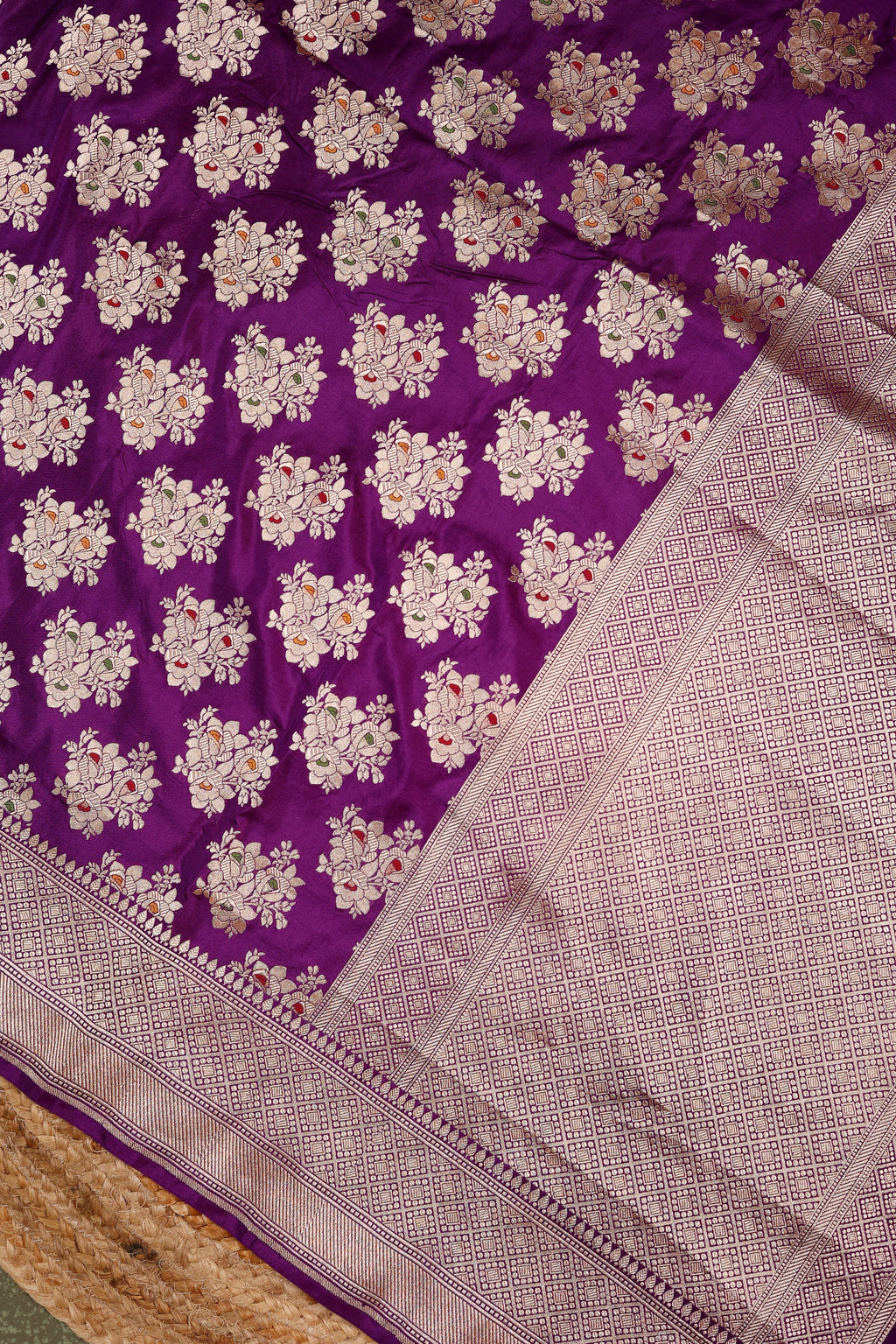 Handwoven Purple Motif Banarasi Katan Silk Saree