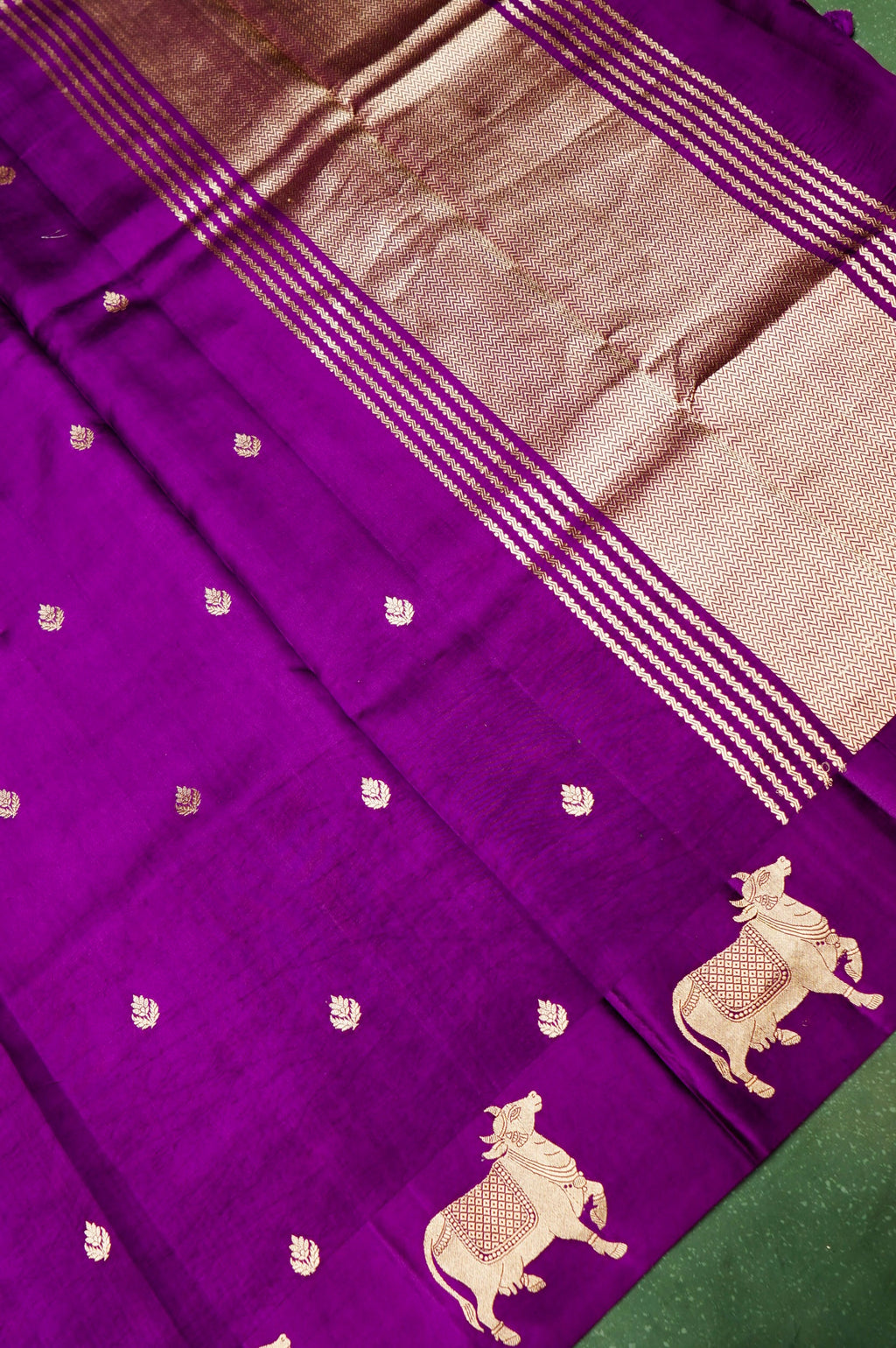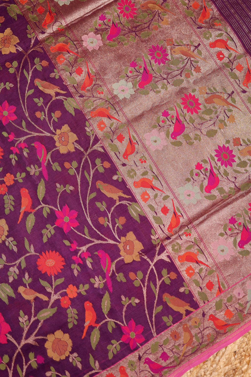 Handwoven Purple Banarasi Tussar Georgette Saree