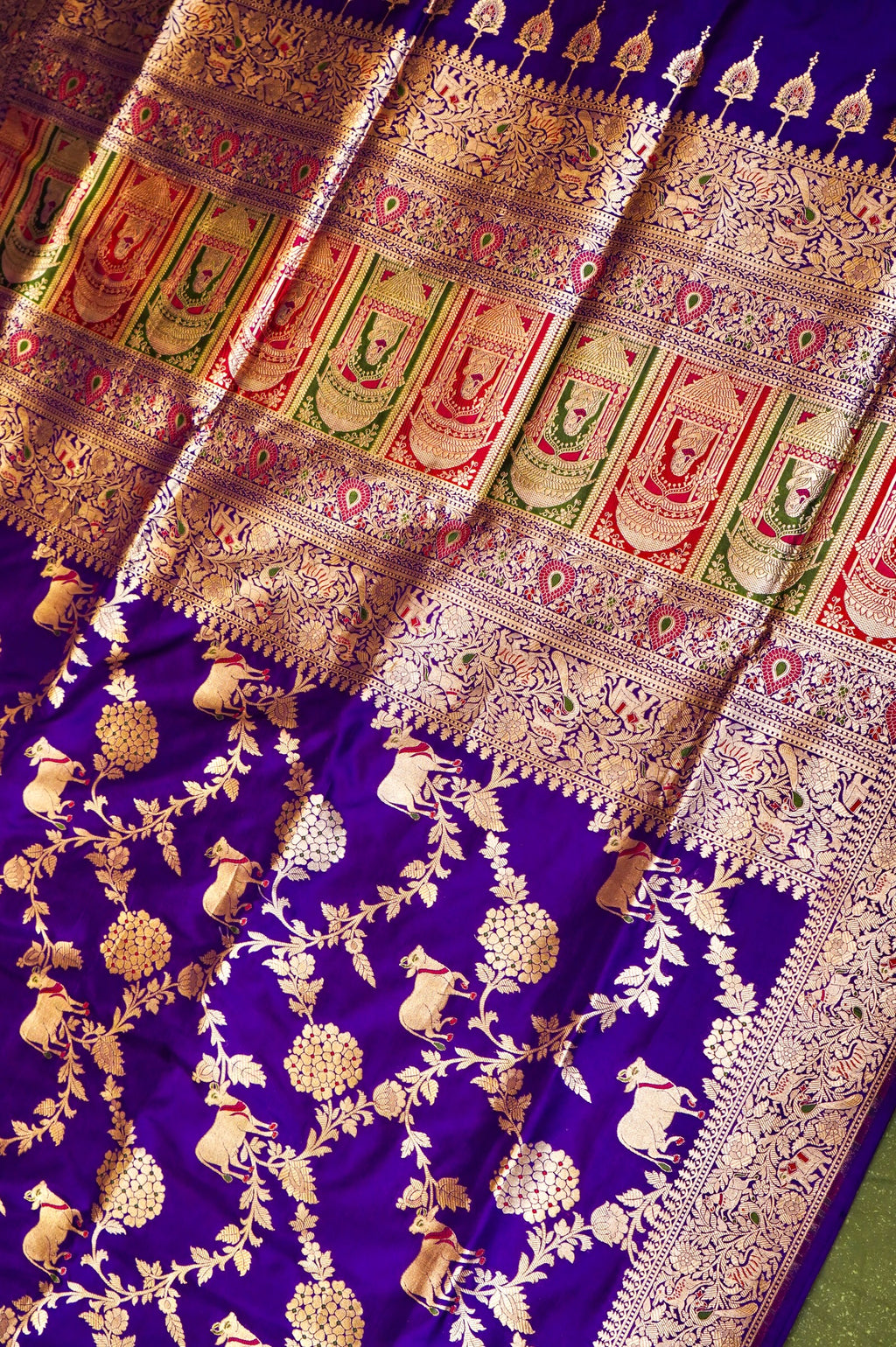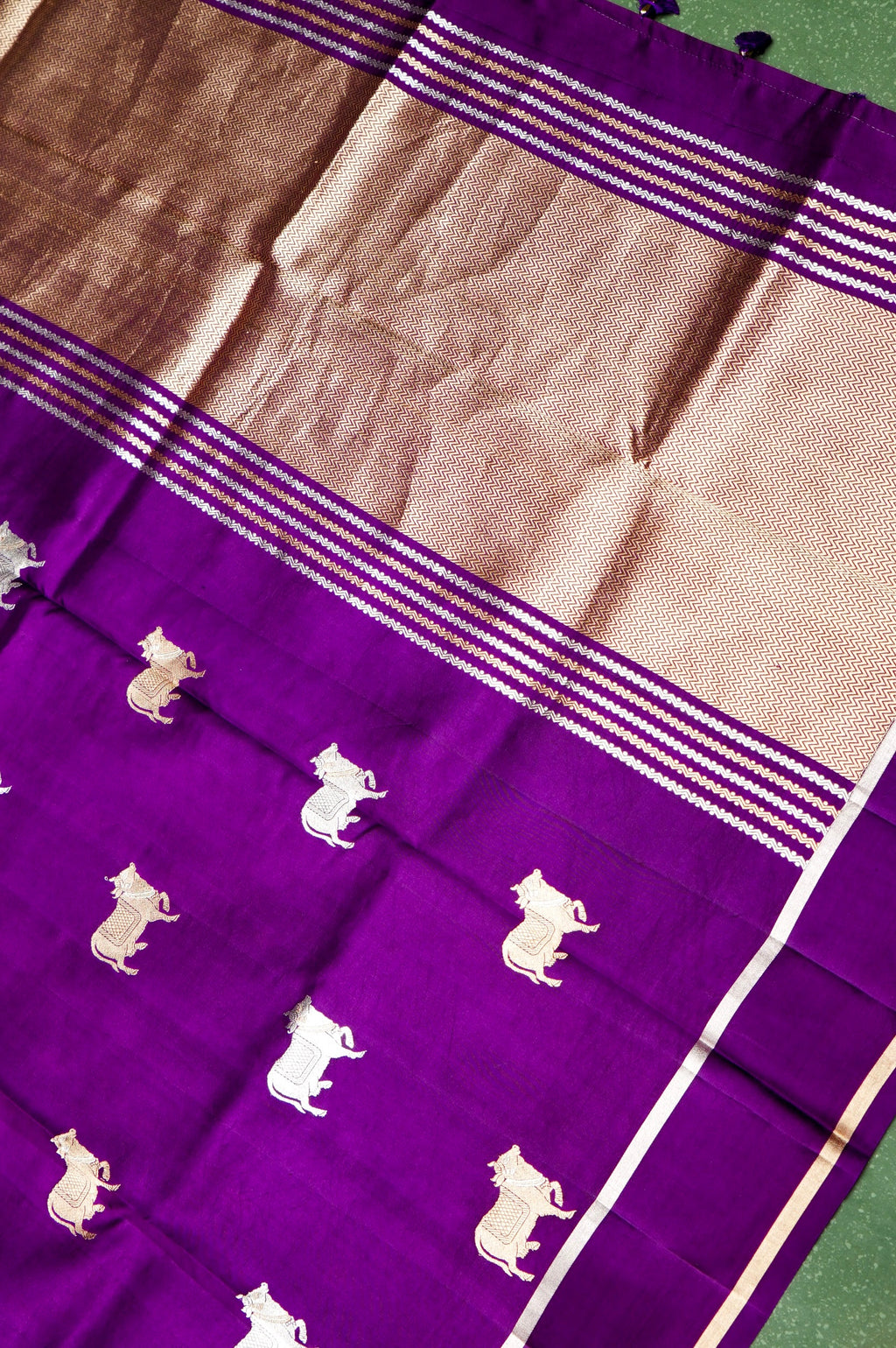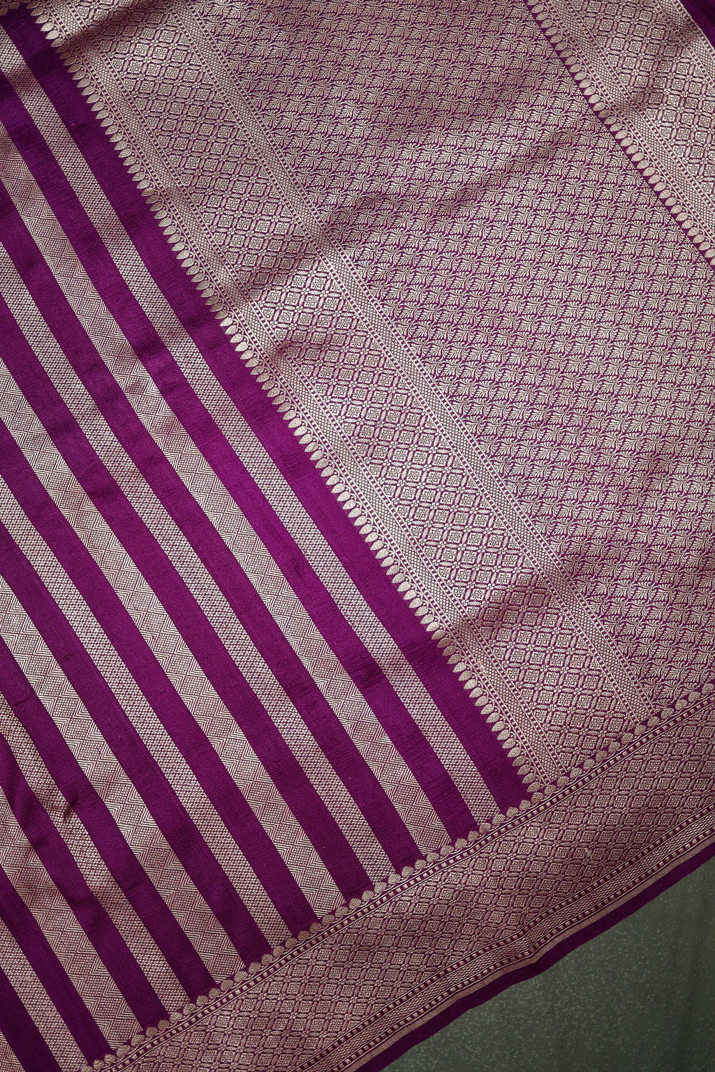 Handwoven Purple Motif Banarasi Mashru Silk Saree