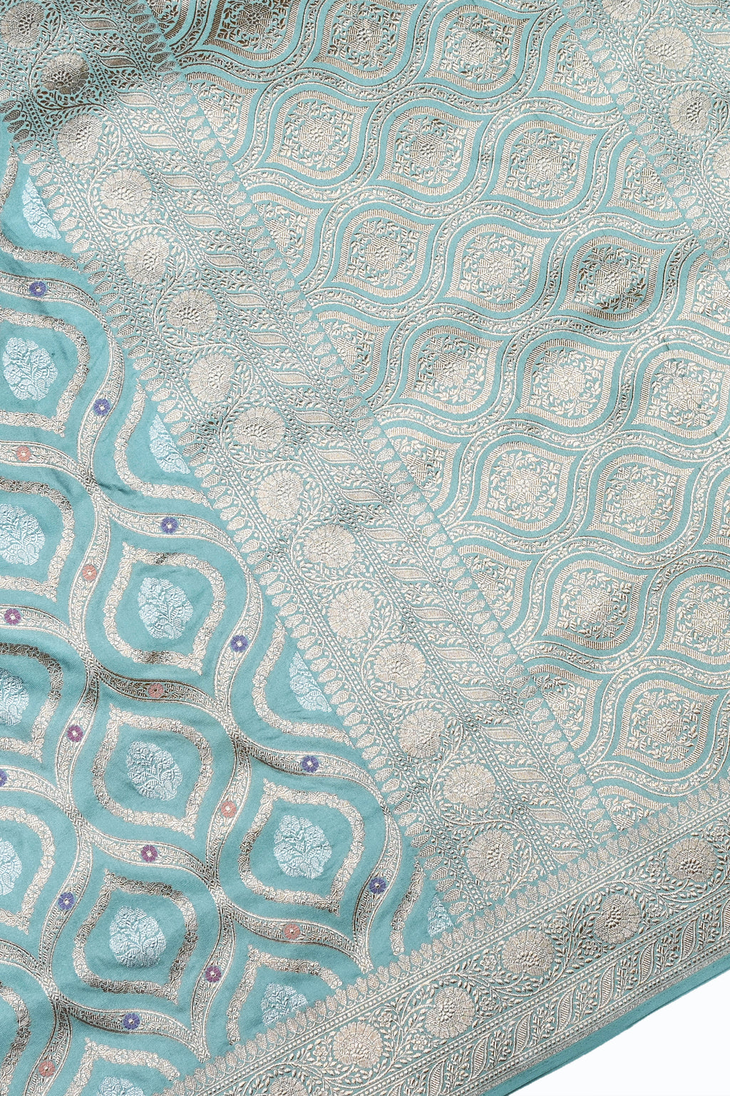 Handwoven Powder Blue Banarasi Pure Katan Silk Saree