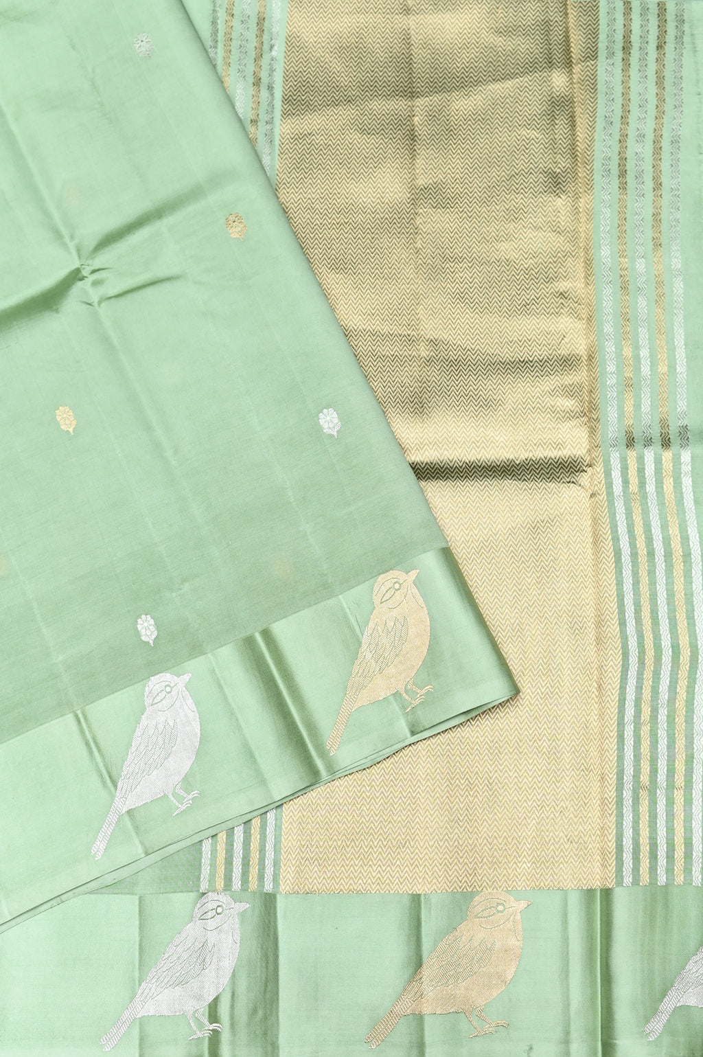 Handwoven Mint Green Banarasi Katan Silk Saree