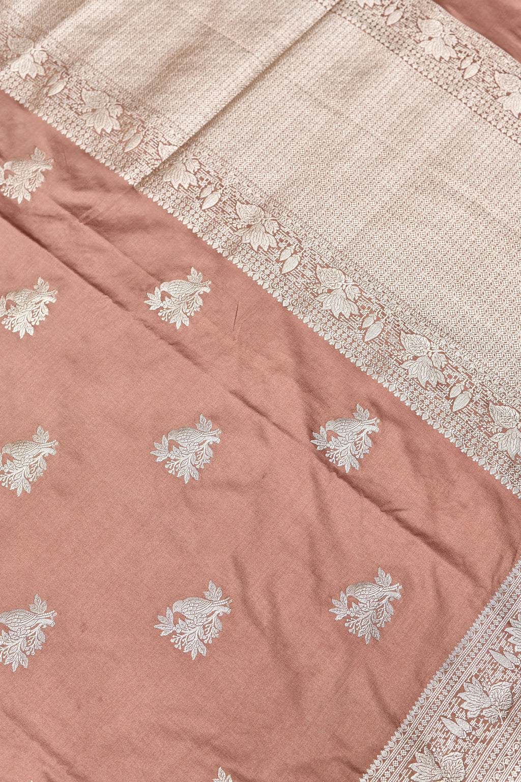Handwoven Dusty Rose Banarasi Moonga Silk Saree