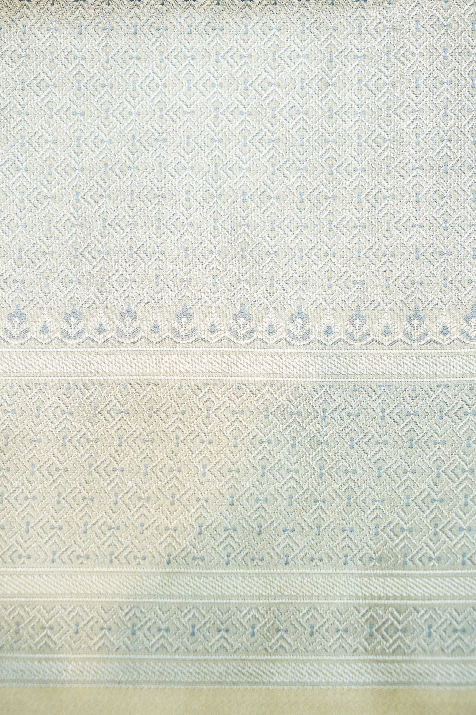 This Handwoven Banarasi Katan Silk saree comes in a serene ice blue tone highlighted with soft silver and pastel undertones that create a calm, refined look. Woven from pure Katan silk, it showcases a smooth texture, graceful fall, and a subtle natural sheen. The delicate geometric patterns enhance its elegance without overpowering the colour. Perfect for daytime functions, formal gatherings, and understated celebrations, this saree reflects timeless Banarasi artistry with a modern, soothing aesthetic.