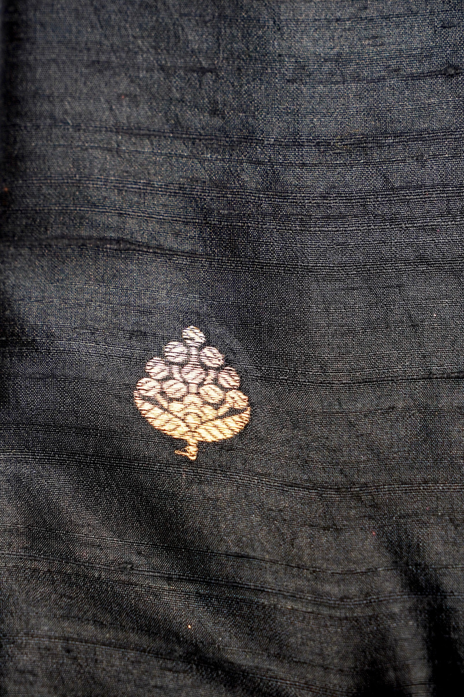 Embrace timeless elegance with this Black Raw Silk Suit Set, a perfect balance of tradition and sophistication. The kurta is adorned with delicate all-over booti work, giving it a rich and graceful appeal. The look is beautifully complemented by a dupatta featuring intricate border detailing and all-over booti design, adding a luxurious touch to the ensemble.Paired with a matching bottom, this suit set is ideal for festive gatherings, traditional functions, or evening occasions — a classic choice for those who appreciate understated elegance.