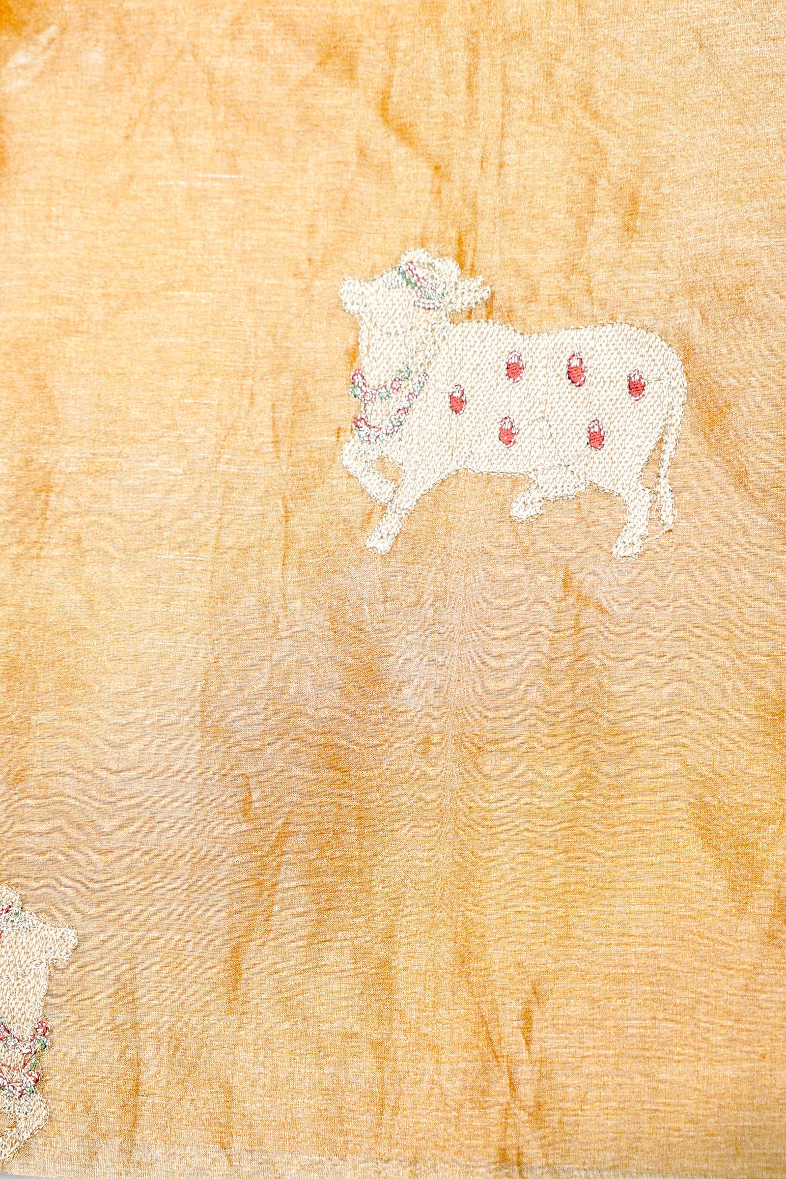 Radiate elegance in this Designer Yellow Tissue Silk Suit Set, beautifully handcrafted with intricate detailing. The suit features all-over woven Nandi motifs, symbolizing purity and grace, adding a touch of traditional artistry to the ensemble. Paired with a matching dupatta adorned with delicate bootis throughout, it is further enhanced by a Nandi motif border highlighted with meenakari floral designs, creating a perfect fusion of heritage and sophistication.An exquisite choice for festive occasions, celebrations, and traditional gatherings — this ensemble reflects timeless Banarasi craftsmanship in every weave.
