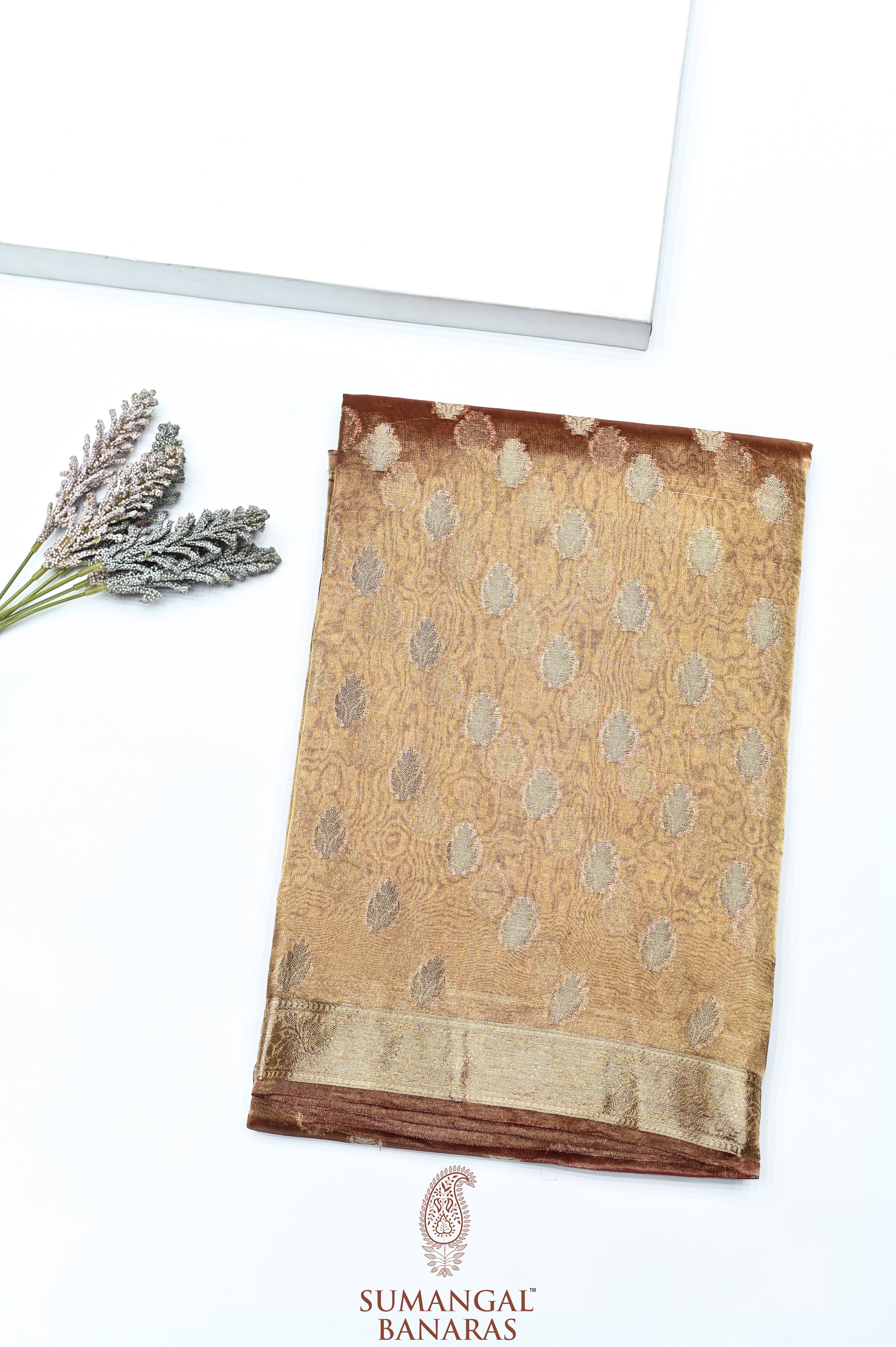 Handwoven Antique Gold Banarasi Tissue Silk Saree