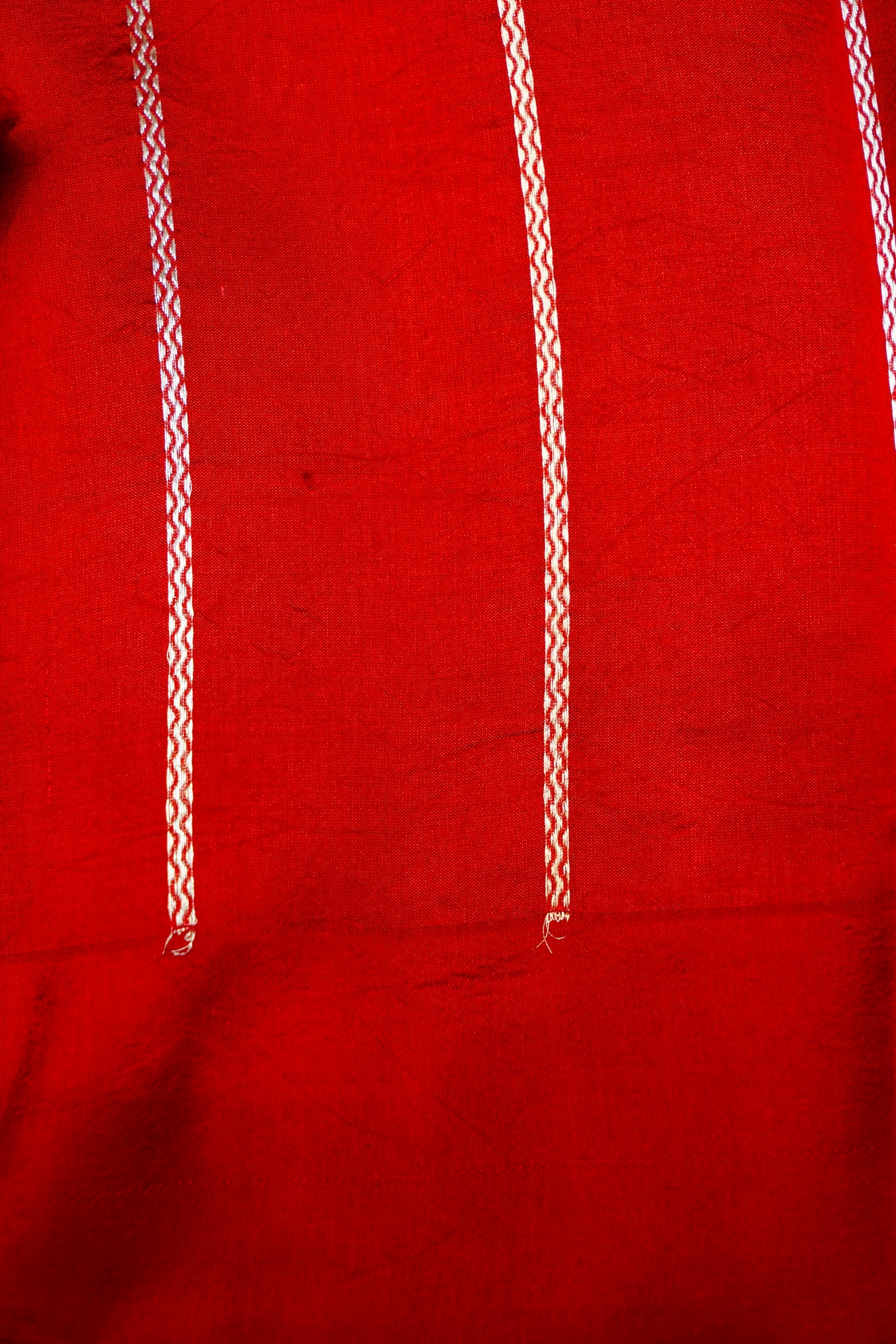 This Handwoven Banarasi Katan Silk Saree showcases a rich deep red body beautifully contrasted with a mustard-orange pallu, highlighted by intricate silver zari woven motifs that reflect classic Banarasi artistry. Crafted from pure Katan silk, the saree offers a smooth texture, elegant sheen, and graceful fall, while the traditional handwoven detailing adds timeless charm and cultural richness. Perfect for weddings, festive occasions, and traditional celebrations, this saree blends bold colour harmony with refined craftsmanship for a truly regal look.