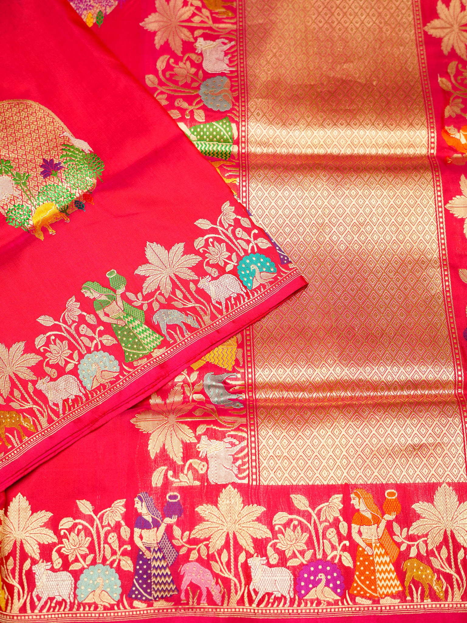 Handwoven Hot Pink Meenakari Motif Banarasi Katan Silk Saree
