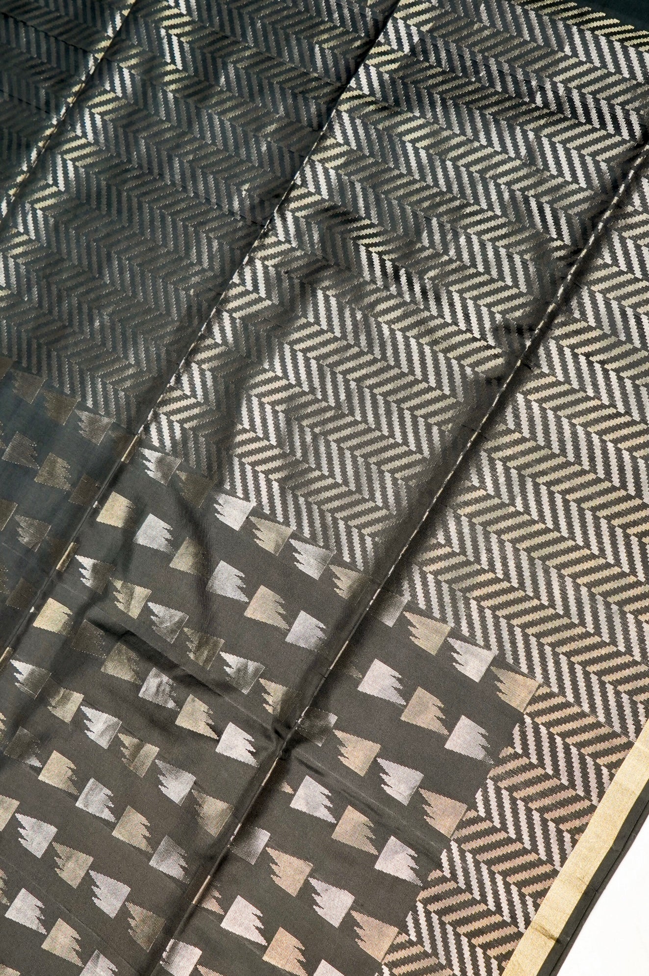 Handwoven Dark Grey Banarasi Soft Silk Saree