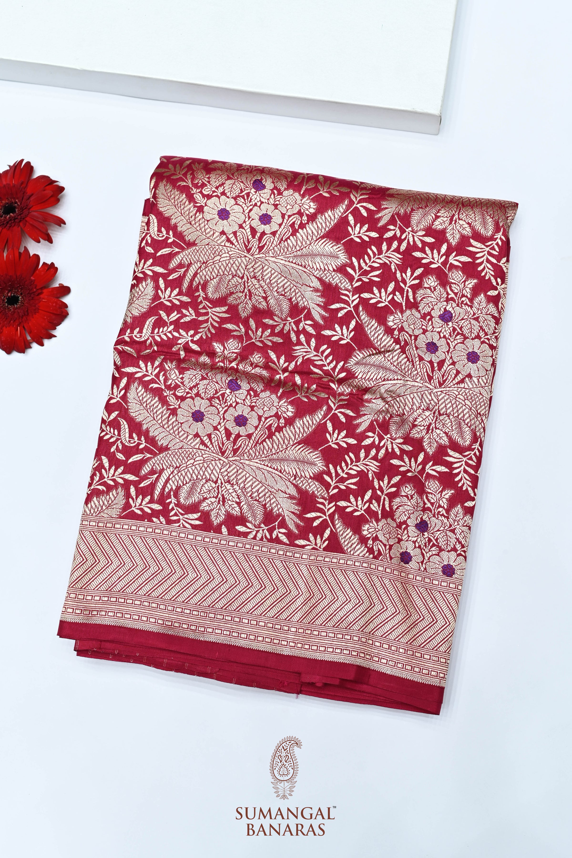 Handwoven Red Kadhwa Banarasi Katan Silk Saree