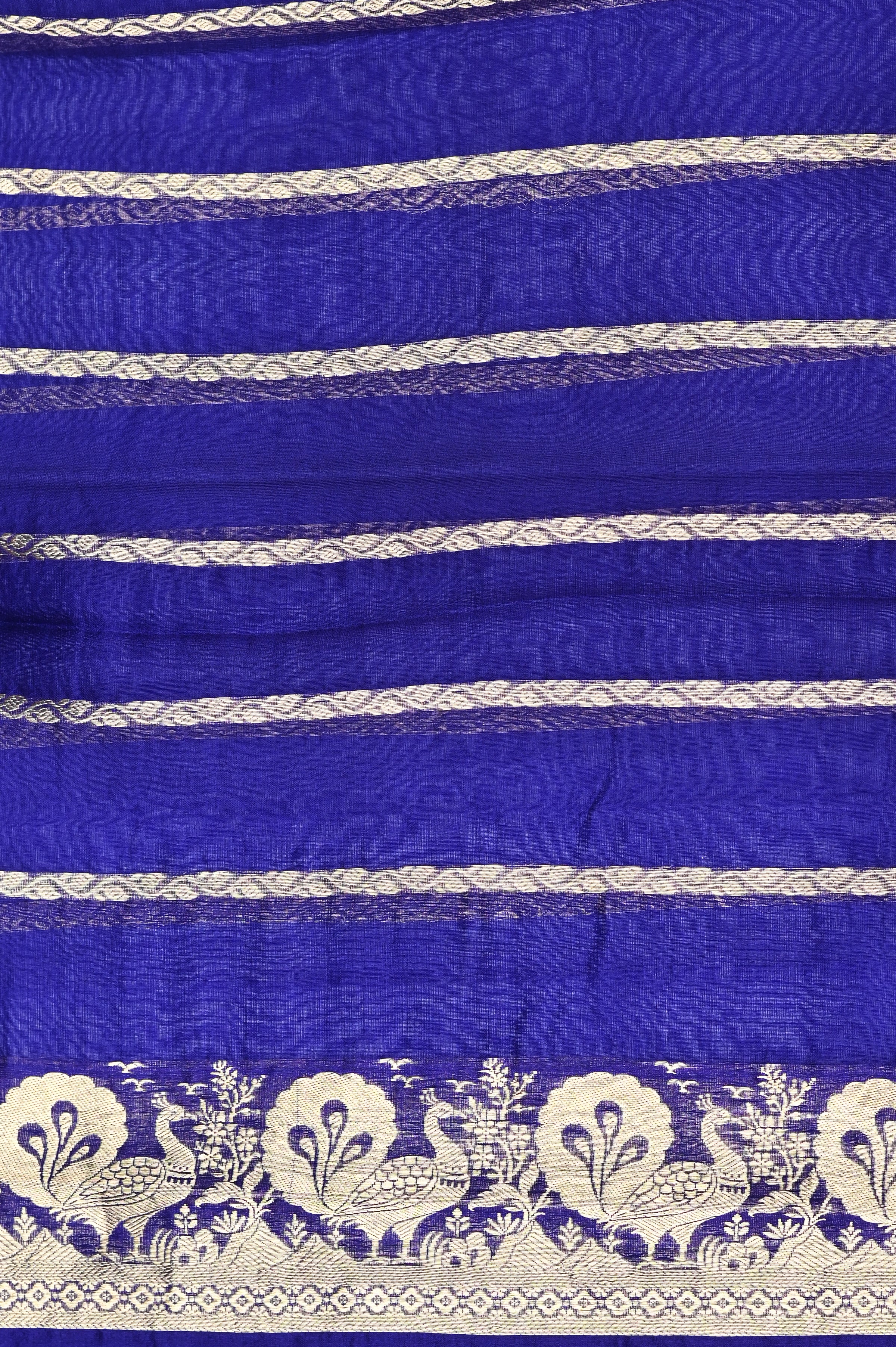 This Handwoven Banarasi Organza Saree in a rich Blue hue reflects timeless Banaras artistry and refined elegance. Crafted from fine tissue silk, it features a luminous texture with beautifully woven zari stripes and an intricately detailed traditional border. The delicate motifs add a graceful charm, while the lightweight weave ensures a smooth, regal drape. Ideal for weddings, festive occasions, receptions, and celebrations, this saree pairs perfectly with gold or antique jewellery. A classic Banarasi silk saree that blends heritage craftsmanship with luxurious modern appeal.