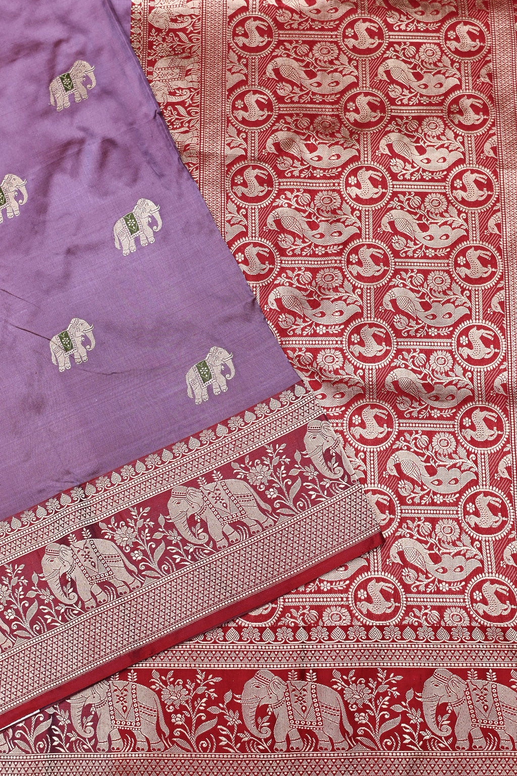 Handwoven Mauve Motif Banarasi Katan Silk Saree